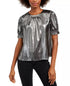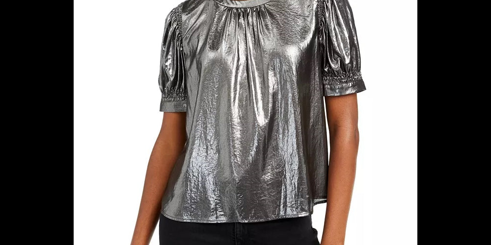 Relaxed fit|Crewneck; back keyhole and button closure|Gathered at neckline; textured sleeves; shirring at top of sleeves|Polyester|Hand wash|Imported