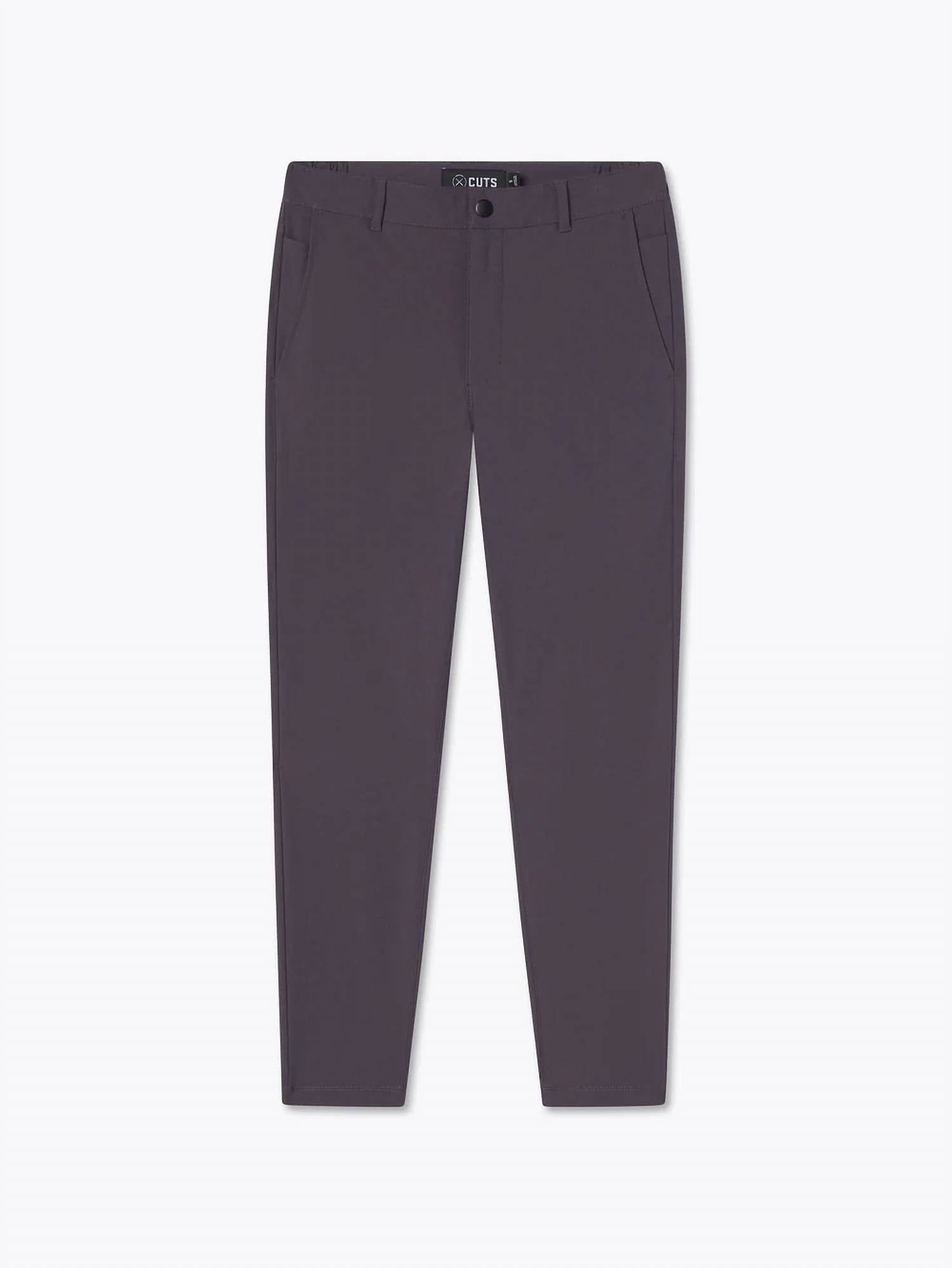Introducing the AO Jogger by CUTS, crafted in a sleek Cast Iron shade with a focus on mobility and comfort. These slim fit joggers feature a modern cuff and tapered leg design, constructed with 53% Elastomultiester and 47% Polyester material. Designed with practical details like a zip closure, side elastic waistband, and ample pocket space, it includes a secure hidden zippered pocket, two rear welt back pockets, and two on-seam hand pockets. Care for these joggers is simple with machine wash cold and tumble dry low instructions; available with an inseam of 27.5 inches.