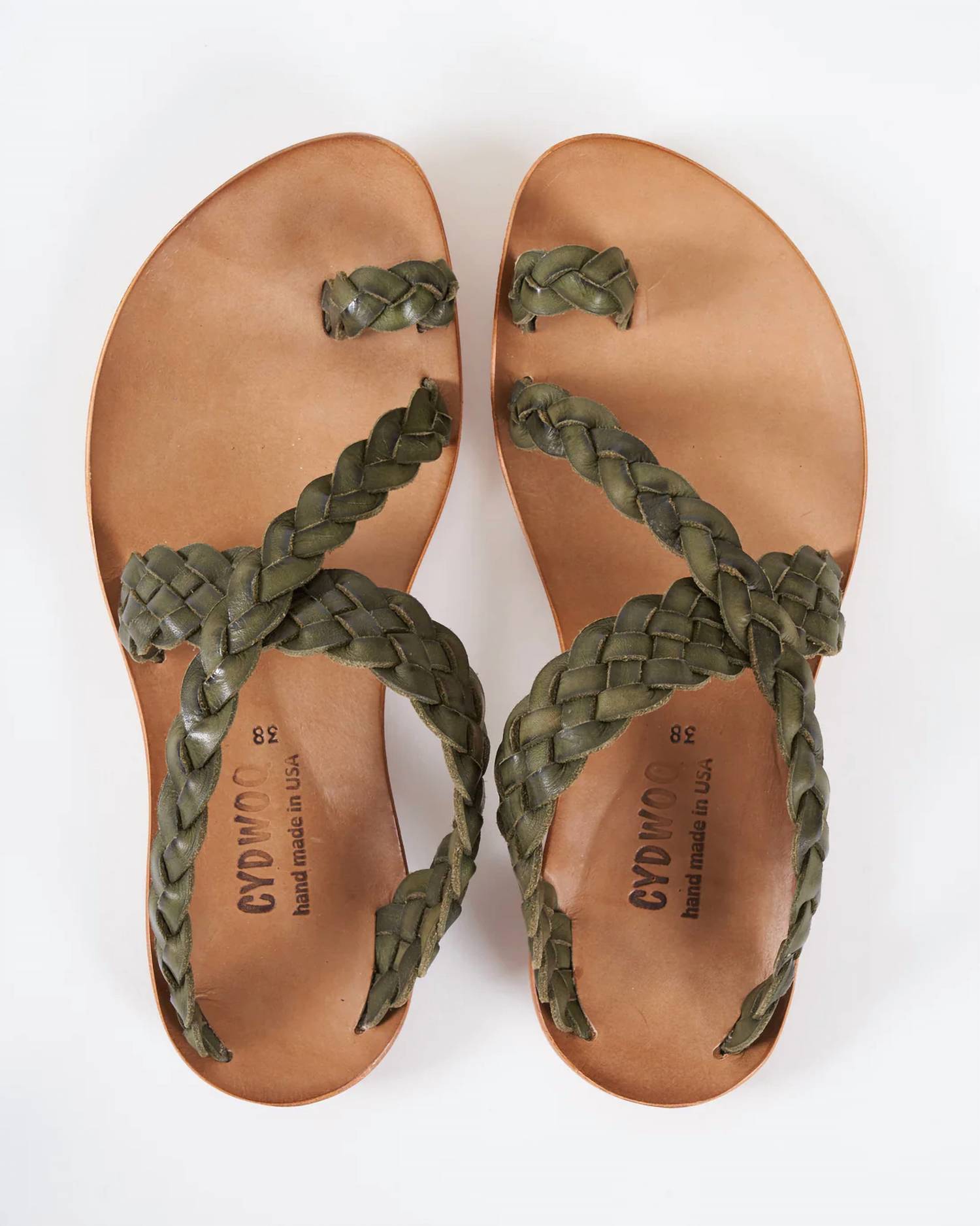Flowy dresses, cropped pants, and even jumpsuits... this sandal works with them all!Step into the perfect blend of style and comfort. Feature a vegetable-tanned leather upper that boasts natural variations in color and texture. Green braided leather straps offer an artisanal charm. Delivering both aesthetic appeal and durability. Designed with a convenient slip-on style. Ensure that you can step out the door in a snap. Open toe shape provides breathable comfort. True to size. Promise a perfect fit. Embrace individuality and timeless craftsmanship with every wear. Handcrafted in US.