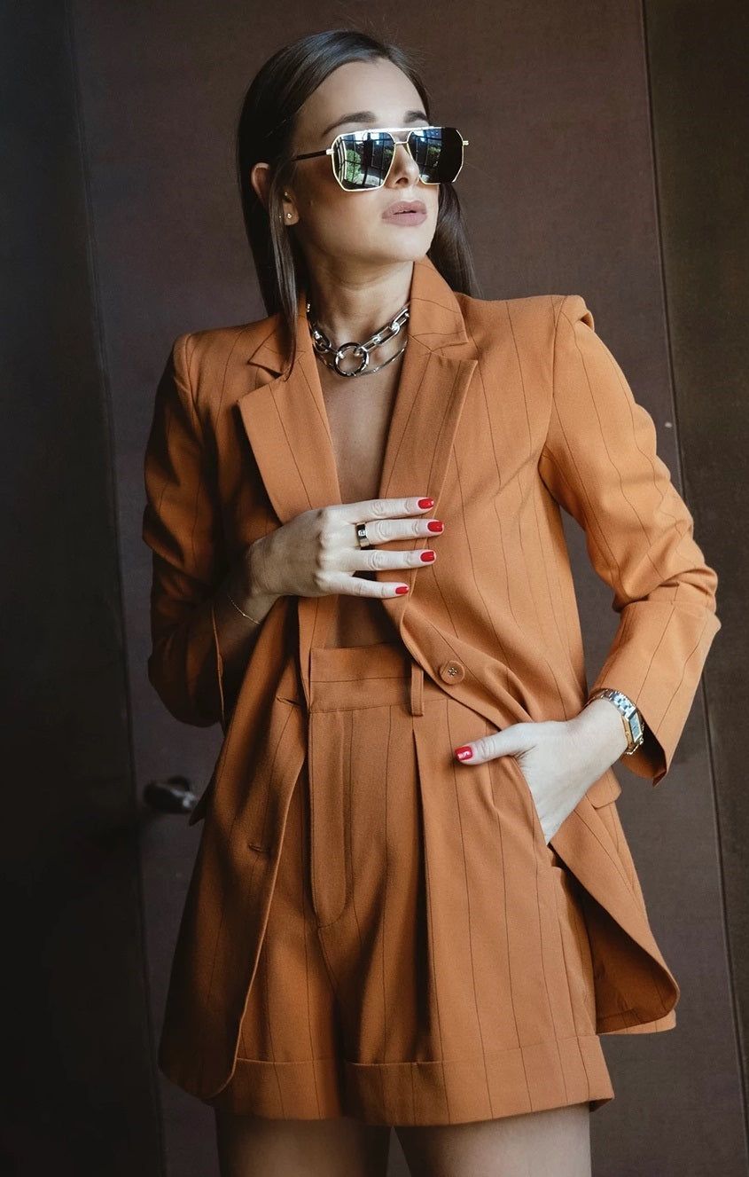 Danielle Bernstein Women's Pinstriped Boyfriend Jacket Orange Size Small