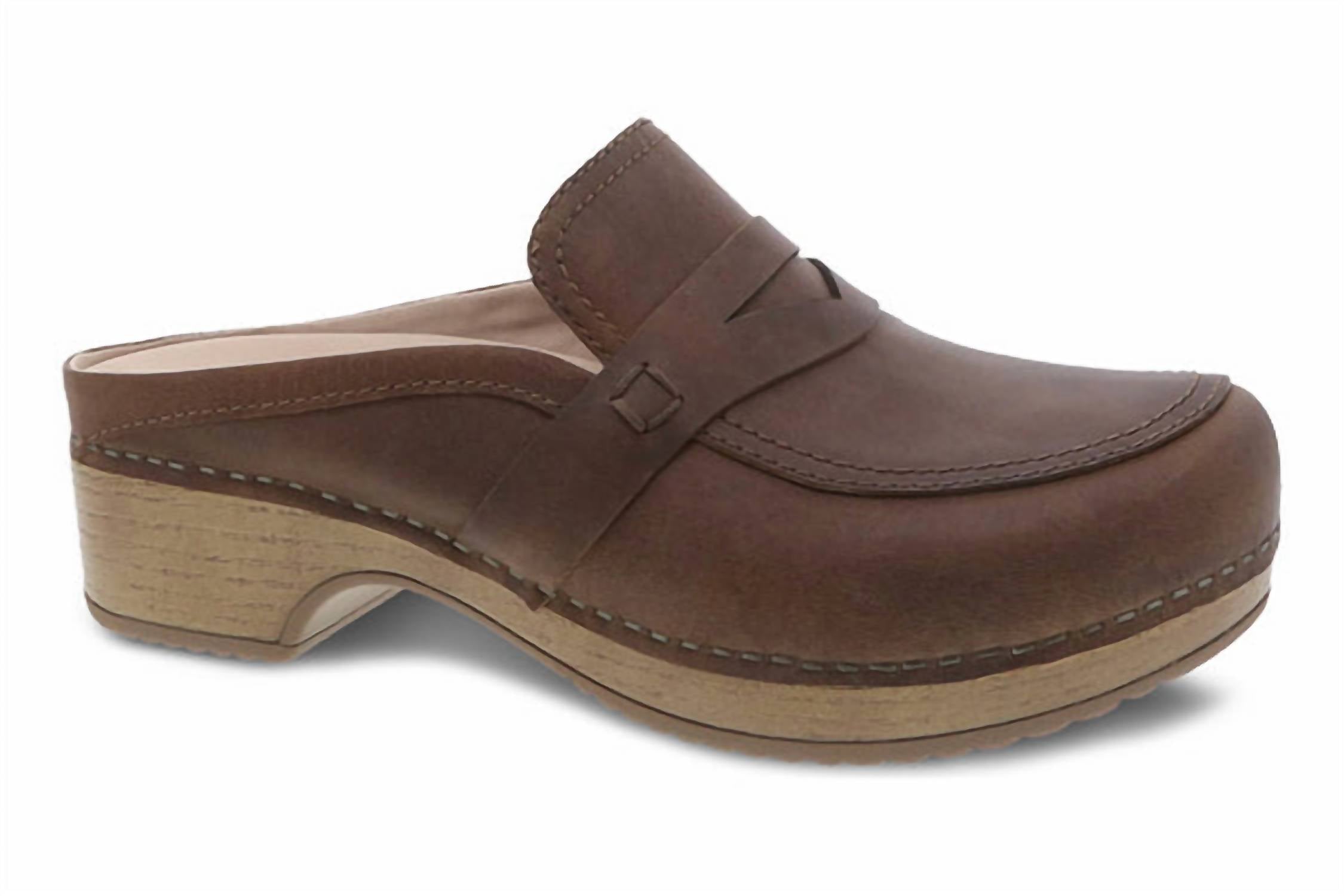 Leather Upper. Memory Foam Footbed. EVA Outsole. Heel Height: 1 1/2 inches. Patented stapled construction and are made with stain-resistant, wipe-clean leather.