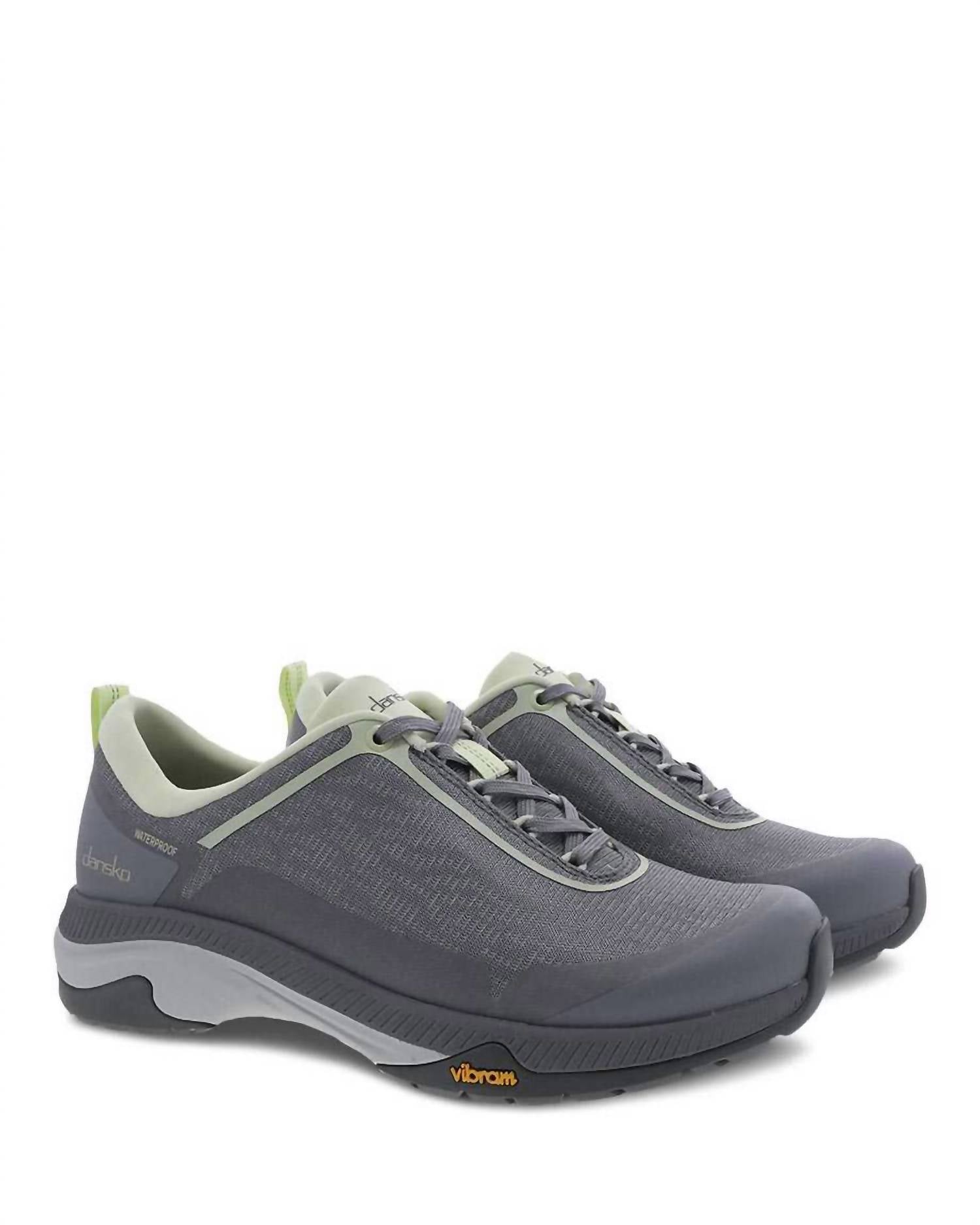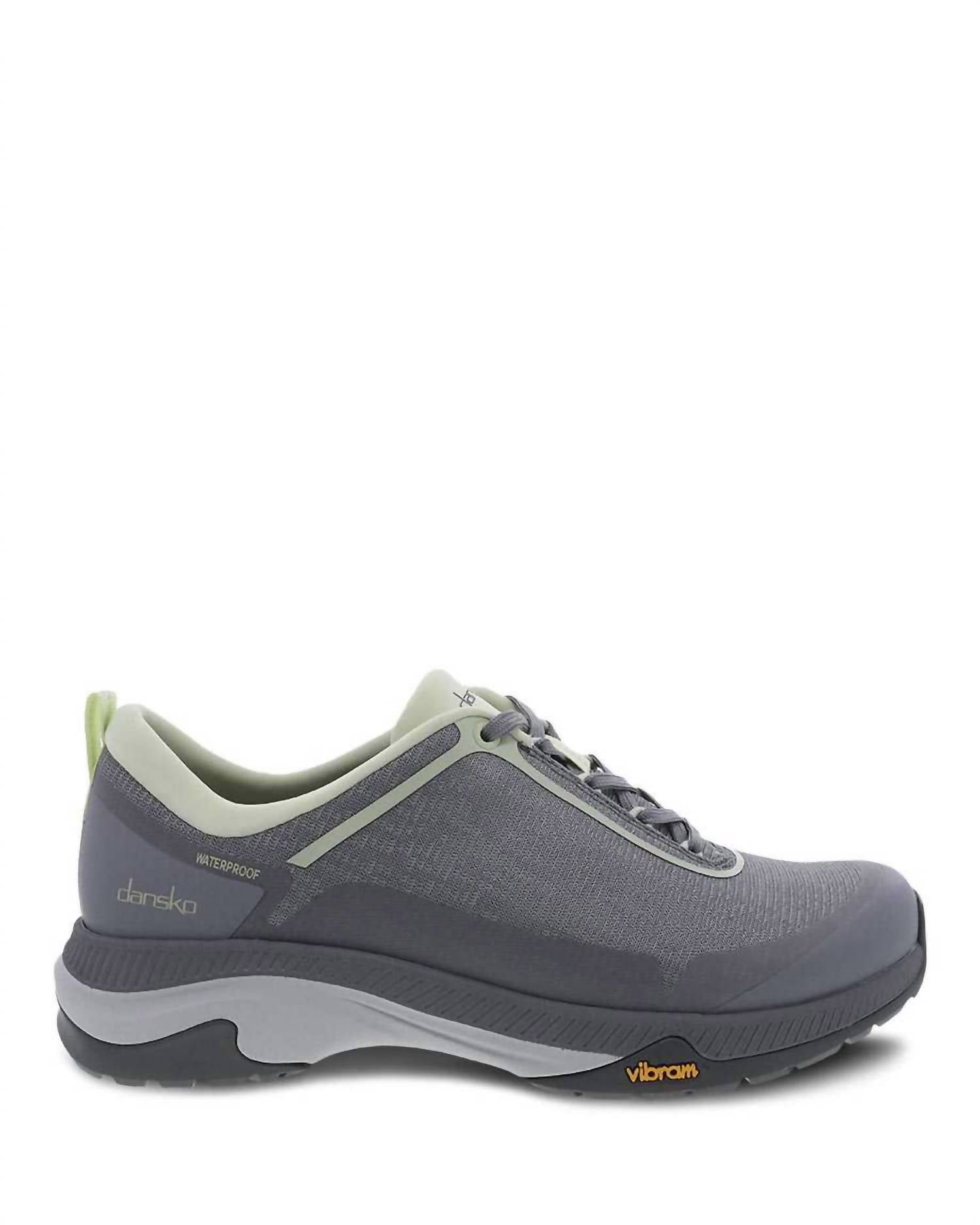 When fashion and function come together seamlessly. Textile linings treated with Aegis® Microbe Shield odor control. Waterproof construction. Waterproof mesh upper. Dri-Lex® recycled textile socklining. Dansko Natural Arch Plus™ technology. Removable energy return EVA footbed with heel shock absorption pad and propel forepart. Lightweight cushioned EVA midsole. Durable Vibram® rubber outsole is slip-resistant