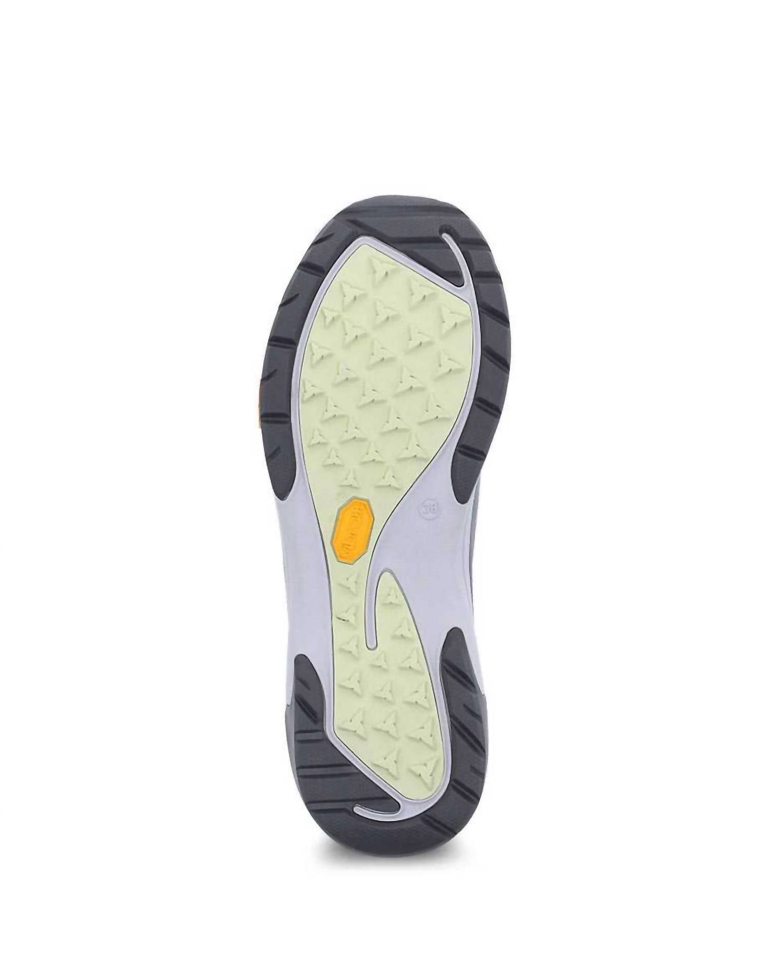 Textile linings treated with Aegis® Microbe Shield odor control. Waterproof construction. Waterproof mesh upper. Dri-Lex® recycled textile socklining. Dansko Natural Arch Plus™ technology. Removable energy return EVA footbed with heel shock absorption pad and propel forepart. Lightweight cushioned EVA midsole. Durable Vibram® rubber outsole is slip-resistant
