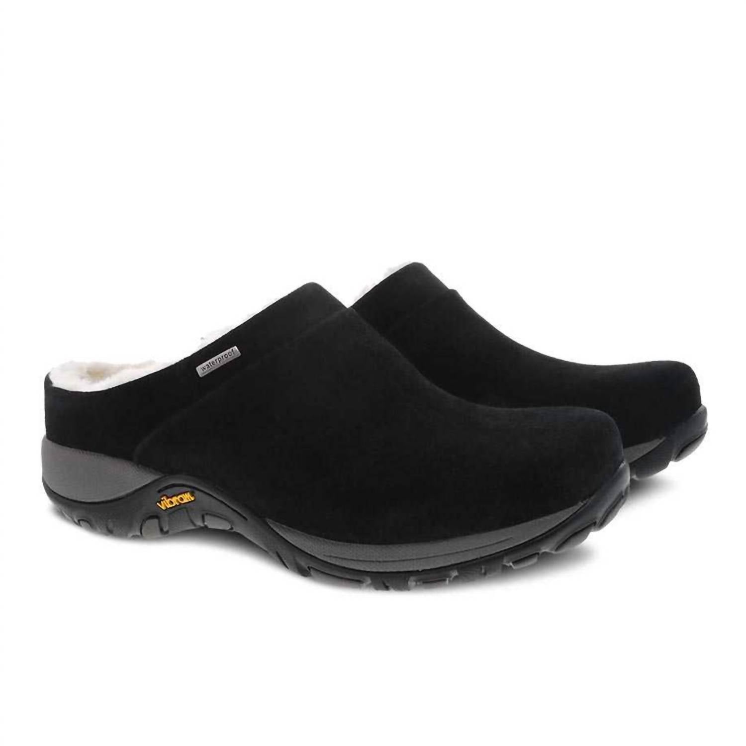 A trend that everyone is loving and this style might just be our favorite. Step into ultimate comfort and style with the Women's Parson Clogs by Dansko. Crafted with waterproof leather uppers, these black clogs are designed for outdoor resilience on snow and dry surfaces, thanks to the slip-resistant Vibram® rubber outsole. Inside, they feature a removable triple-density footbed ensuring arch support and shock absorption, while DuPont™ Sorona® fiber offers superior moisture management. For added durability, the 1.5" flat heel includes a built-in shank for stability and support, and the exterior is protected against stains with 3M Scotchgard™ technology.