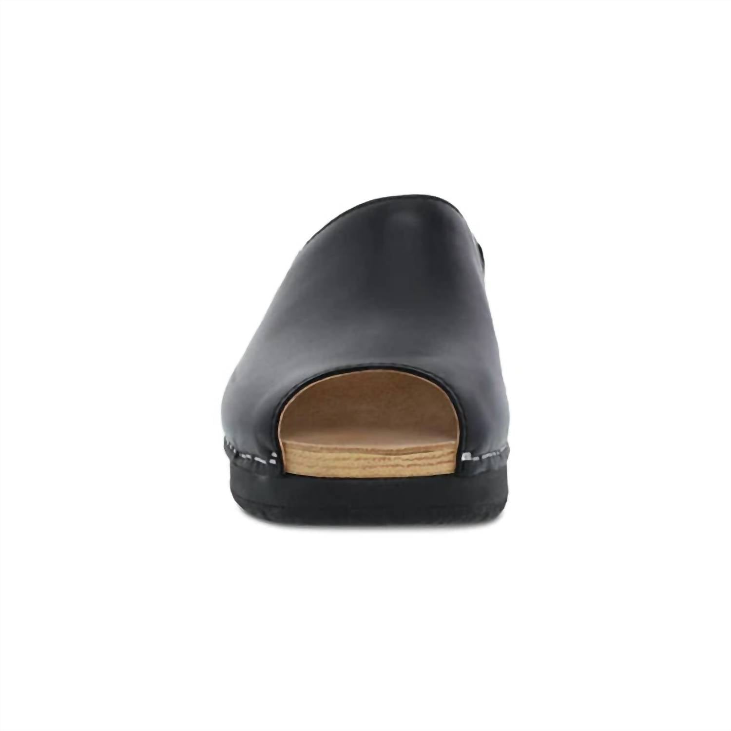 Peep toe sandal. Patented stapled construction. High-quality leather upper. Soft linings made from 100% recycled textile with odor control. Chrome-free suede sock lining. Cushioned, energy-return polyurethane footbed. Lightweight, contoured BPU midsole. Flexible, lightweight thermoplastic rubber outsole.