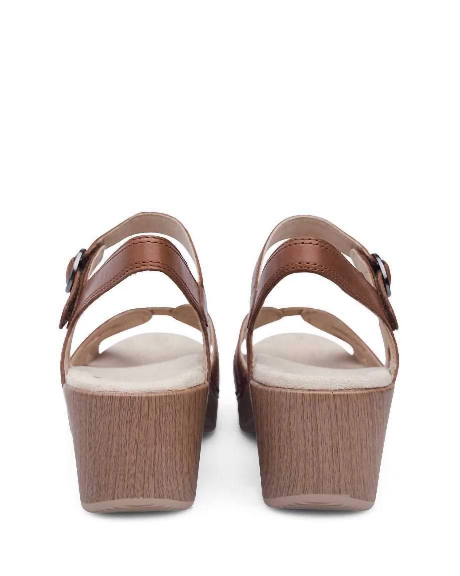 Classicly cute and all-day-wearable. We love this sandal. Step into the summer season with the Women's Season Sandal by Dansko, combining uncommon comfort with minimalist style. Featuring an adjustable strap, this sandal is built on the popular Sausalito sole, ideal for fashionable spring and summer looks. Its classic camel color complements the peep toe and platform heel design, making it perfect for a dinner party or Thanksgiving gathering. Embrace the understated elegance and unexpected flair of this versatile sandal.