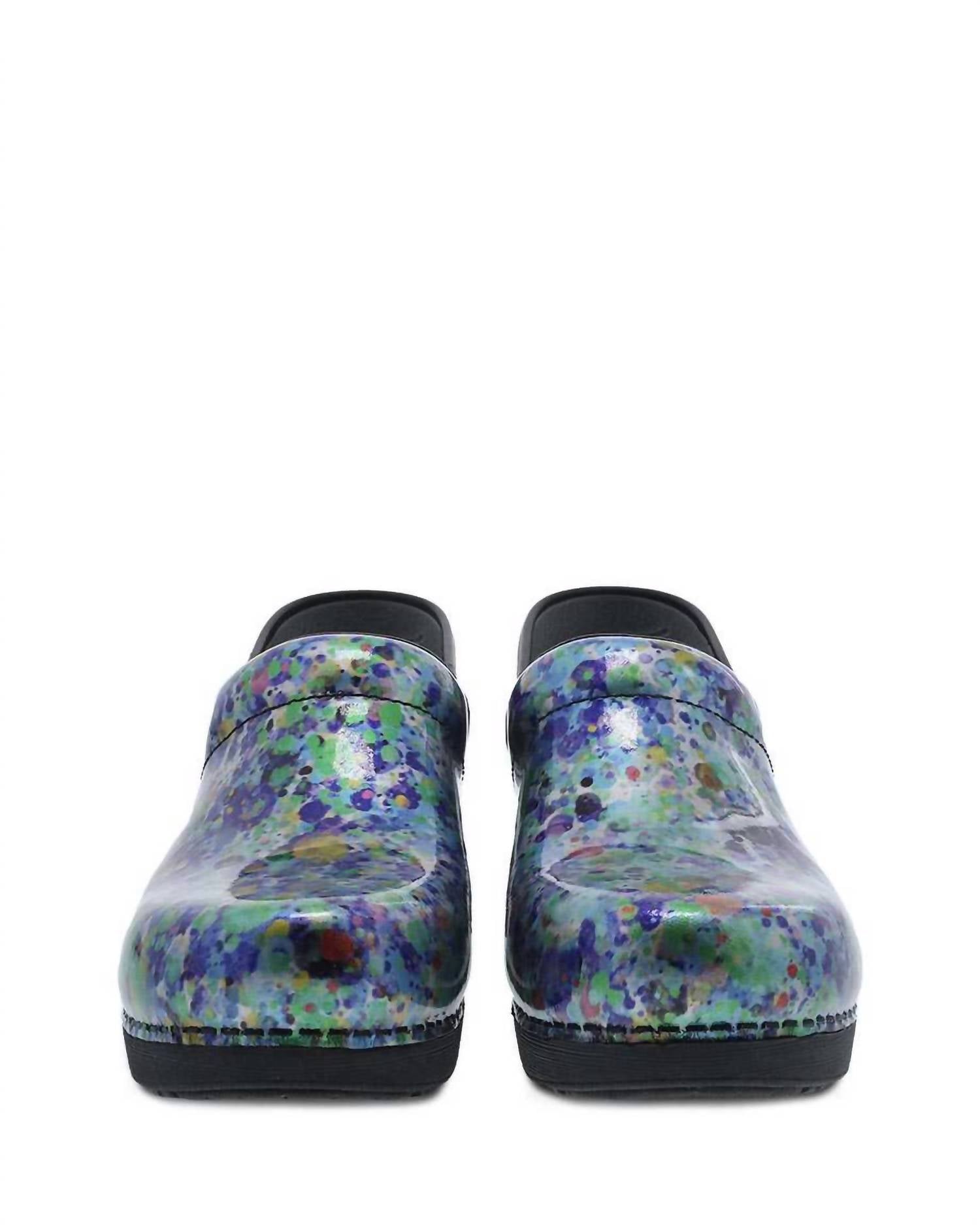 A trend that everyone is loving and this style might just be our favorite. Experience all-day comfort and durability with the Dansko Women's XP 2.0 Patent Clog in a whimsical Watercolor Dots pattern. Featuring leather uppers and a roomy round toe box, this clog ensures your feet have plenty of wiggle room. The lightweight EVA midsole and slip-resistant rubber outsole provide excellent shock absorption and traction across various surfaces. With a removable PU footbed and Dansko Natural Arch technology, you'll benefit from superior arch support and cushioning for those long days on your feet. Heel height: 1.75 inches, making it perfect for fall vacations and maximalist style statements.