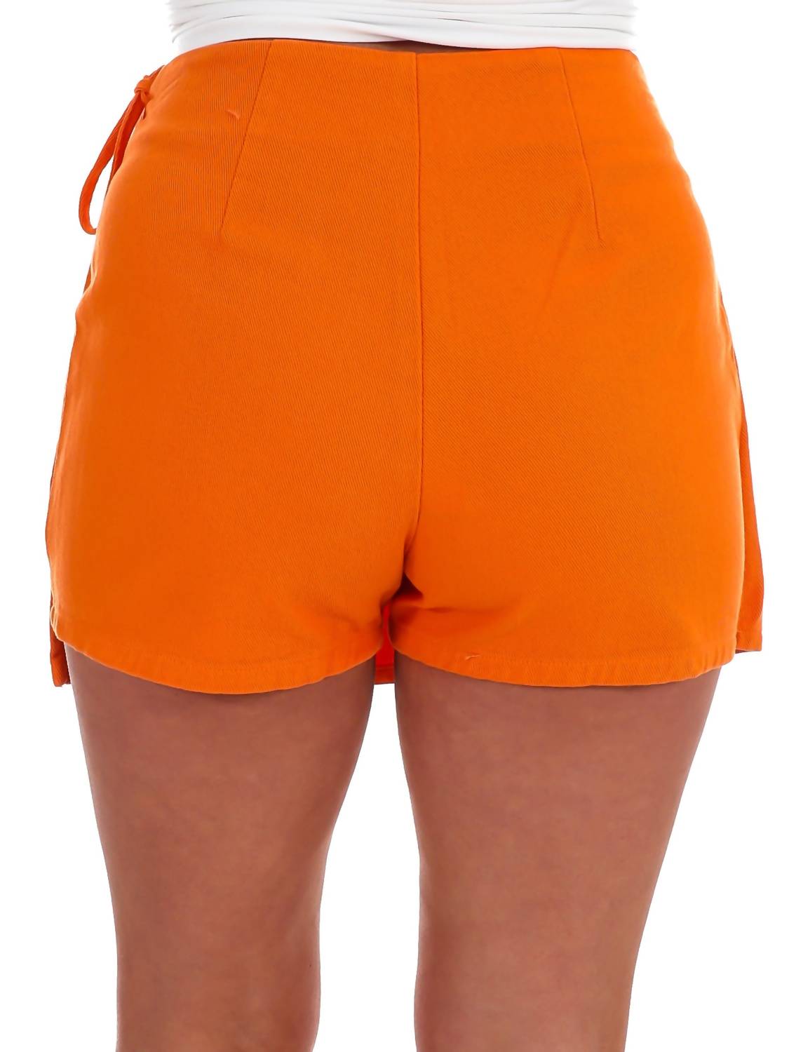 Meet the Touchdown Ties Denim Wrap Skort by Day + Moon, a blend of style and functionality. This chic skort in vibrant tangerine comes with convenient pockets and features a tie closure, making it an essential piece for game day or a casual outing. It’s crafted with a solid pattern that aligns with the Maximalist trend. For care, hand wash and line dry to maintain its vibrant look, perfect for your spring wardrobe and Thanksgiving holiday gatherings.