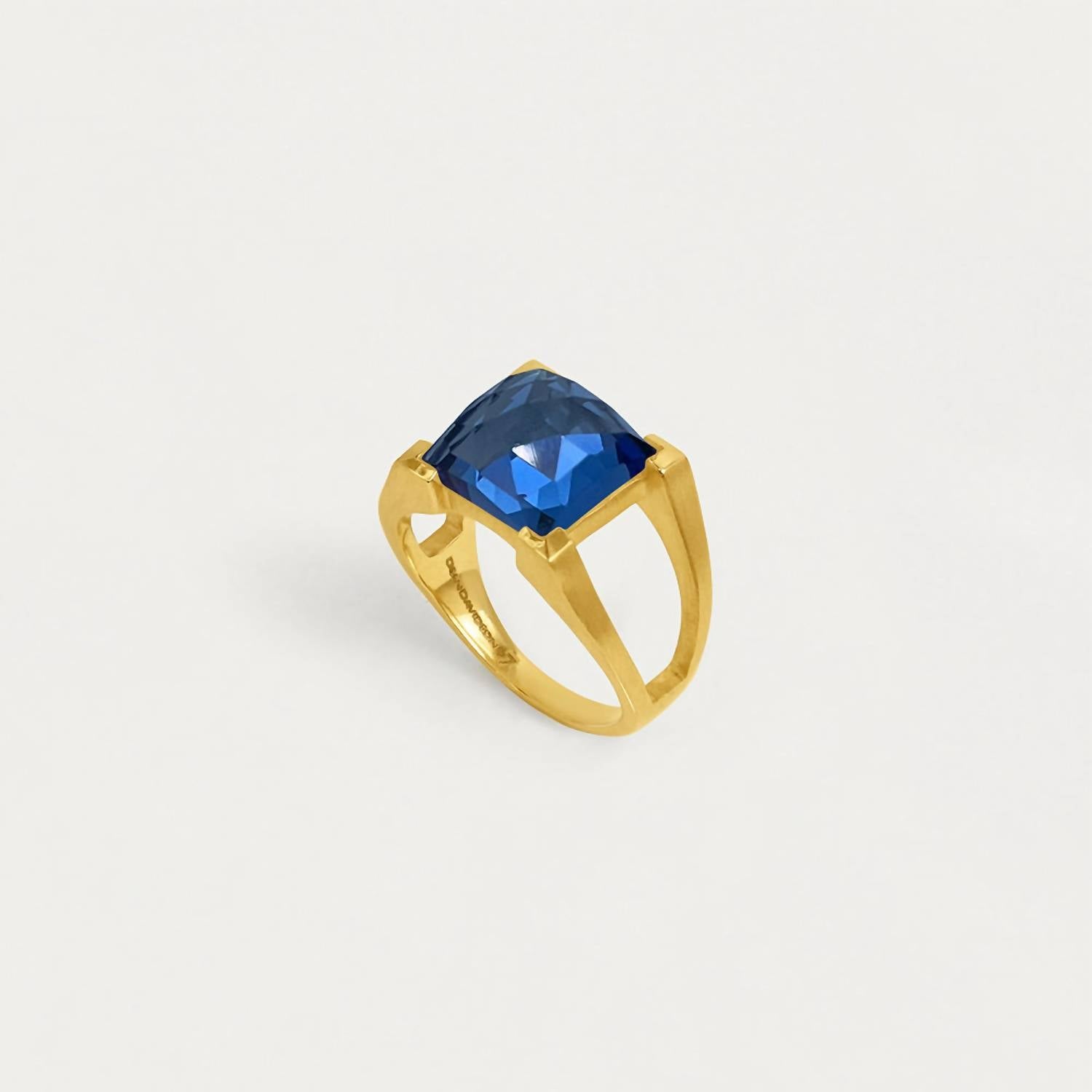 Wear this ring stacked or by itself... you can't go wrong. Discover the Women's Mini Plaza Ring by Dean Davidson, crafted for everyday elegance with a striking Midnight Blue hue. This fine ring is made from Brass and features a natural gemstone with a diameter of 10x10mm, all enhanced by a luxurious gold plating. Perfectly designed to be stackable, it redefines iconic style in a smaller, more versatile size. Originating from high-quality craftsmanship, this piece is a testament to timeless wearability.
