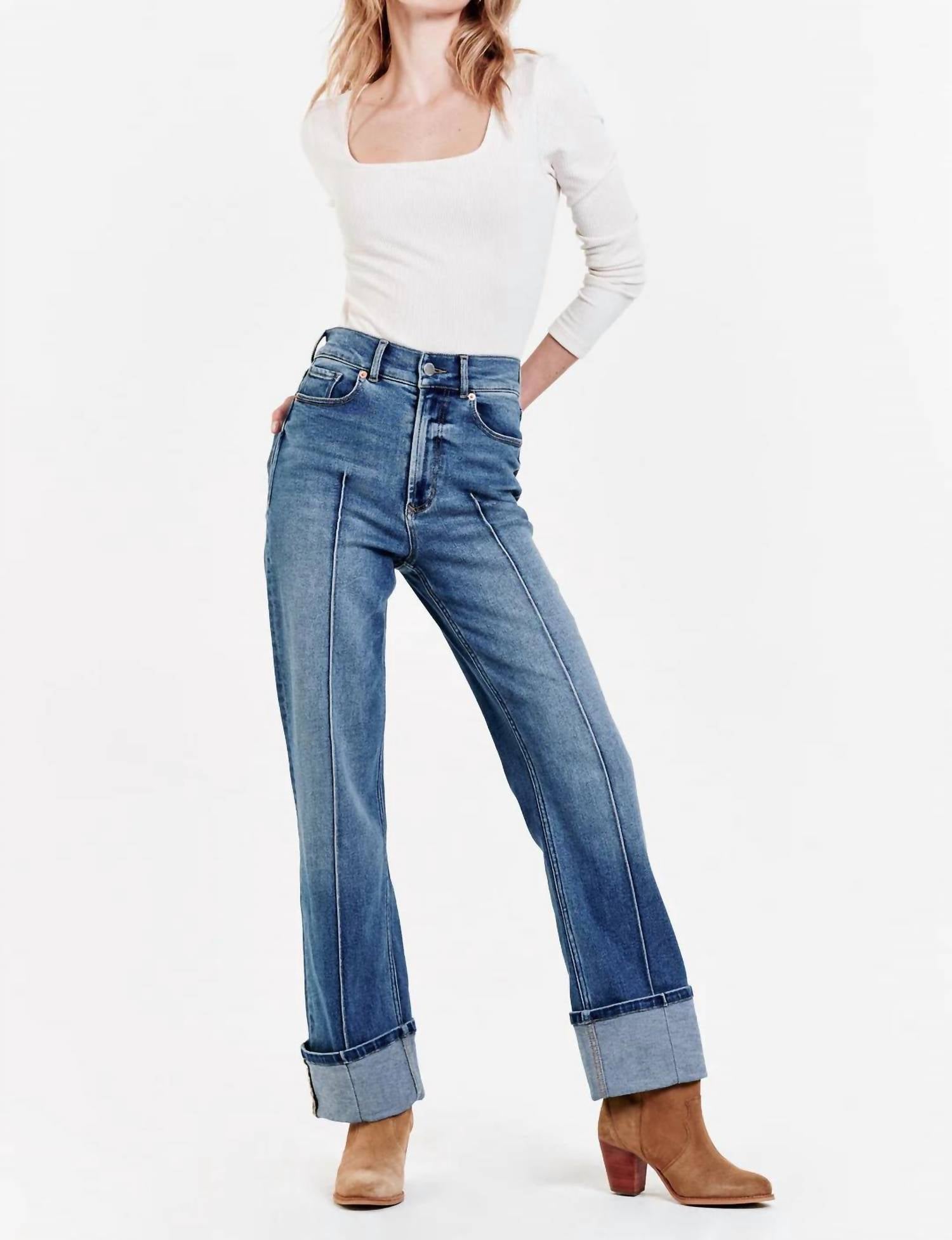 Meet the DEAR JOHN DENIM Holly Super High Rise Cuffed Straight Jeans in Justice, designed to make a stylish statement. These jeans boast a composition of 94% Cotton, 4% Polyester, and 2% Spandex, crafted from comfort stretch denim that's imported. Featuring a high-rise 11" front rise with a chic 30" inseam with a 4 1/2" cuffed hem, they provide a flattering fit from hip to mid-thigh. Closure is secured with a zip fly and button, and care is effortless with machine wash cold and tumble dry low instructions.