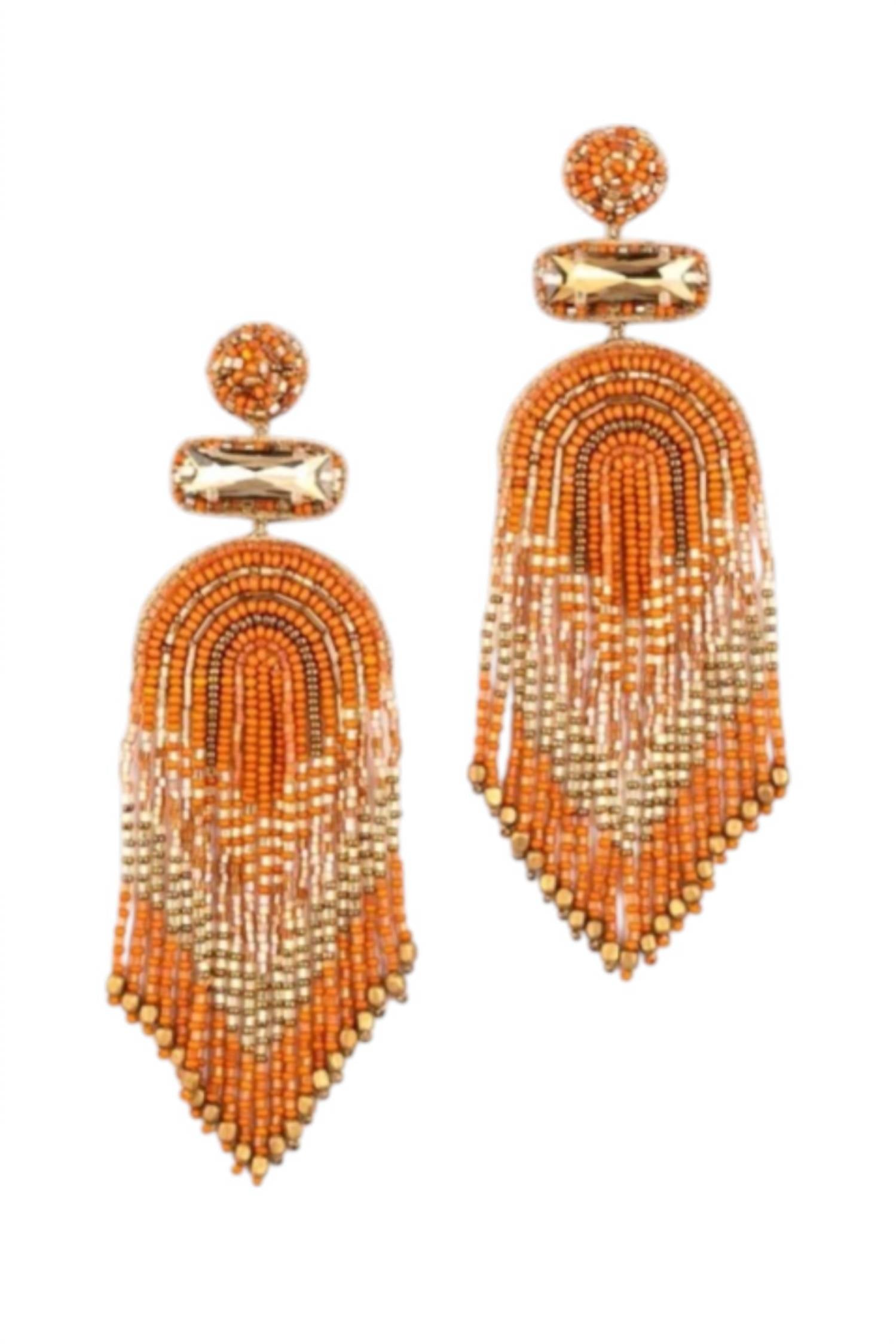 Introducing the Women's Ishani Earrings by Deepa Gurnani, a stunning addition to any accessory collection. These statement drop earrings in a glamorous champagne hue are expertly handcrafted, featuring lightweight post chandelier detailing for comfortable wear. Made from exquisite crystal, they effortlessly blend intricate design with versatile styling. Perfect for elevating any ensemble, these earrings are the epitome of fashion jewelry sophistication.