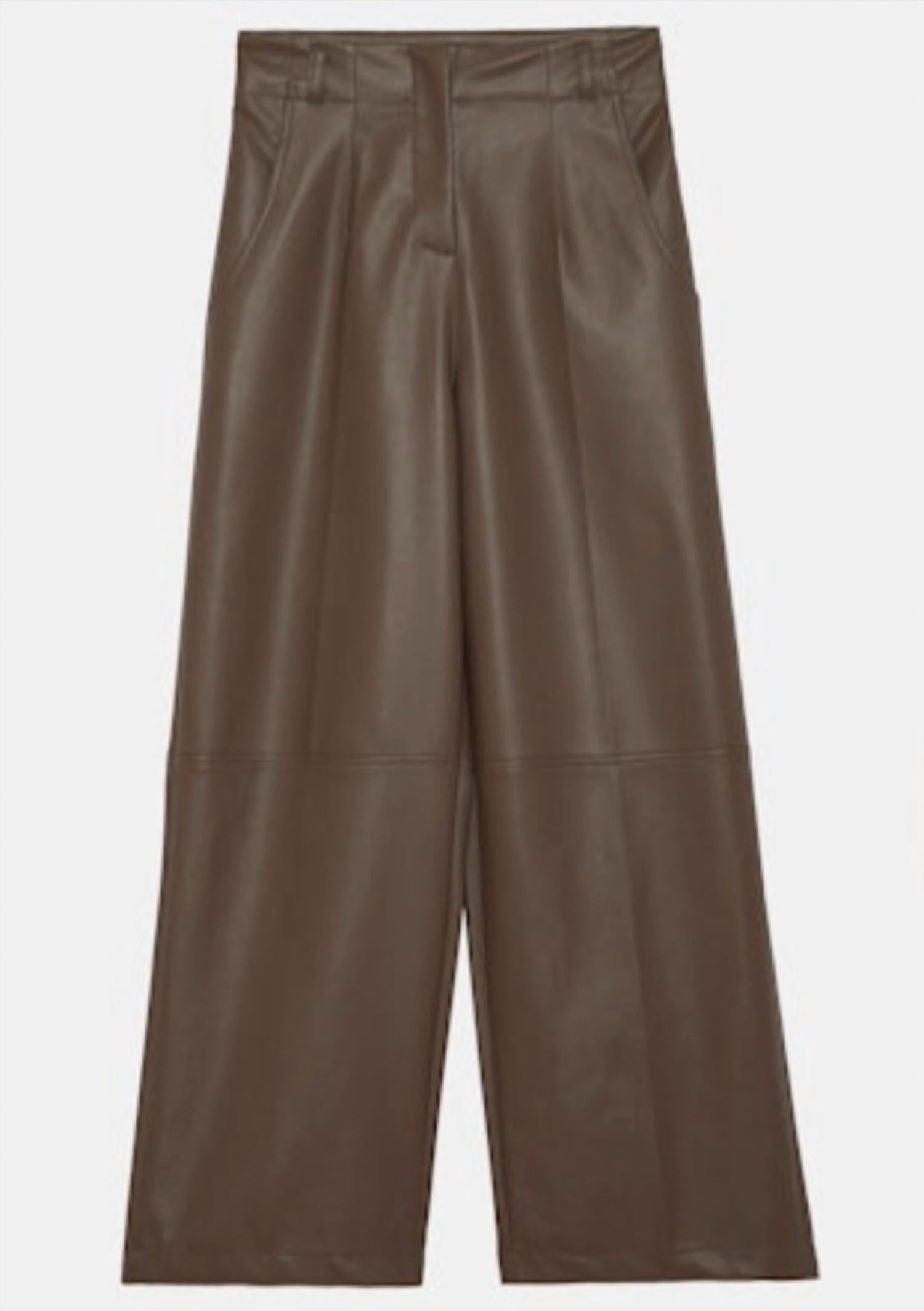 Discover the Women's Clethra Pants by Dèluc, a bold choice in taupe for modern sophistication. Crafted from luxurious faux leather, these women's pants feature a wide-leg style perfect for elevating any outfit with effortless elegance. The design includes a practical hook-and-eye closure and convenient pockets, with a high-rise waist for a flattering fit. Make a sleek statement in solid taupe with these versatile, fashion-forward pants.