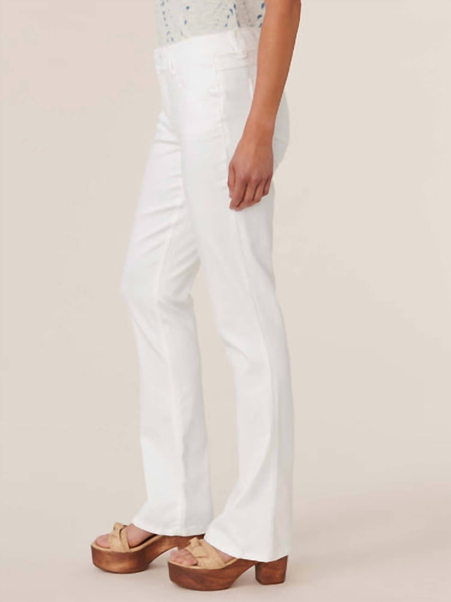 Stay on trend with these stylish boot cut pants that are fit to perfection. The perfect combination of comfort and fashion, you'll be grabbing for these all season long! Rediscover your style with the Democracy Itty Bitty Bootcut Jeans, crafted from a comfortable cotton blend(51% Cotton, 24% Lyocell, 22% Polyester, 3% Spandex) for a flattering fit. The mid-rise design features "Ab"solution fit technology to ensure smooth support and enhance your shape from every angle. These optic white jeans offer a chic appearance with a baby bootcut leg opening for a lengthening effect, complete with a button and zip fly closure and classic five-pocket styling. Care is a breeze with machine wash recommendations and a tumble dry low setting.