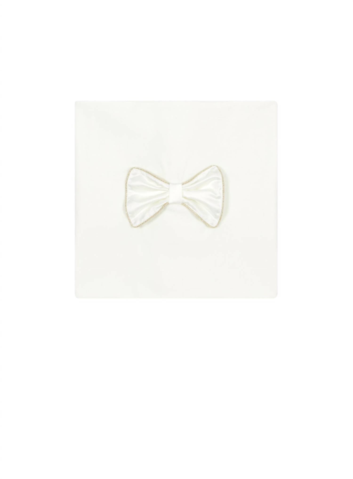 Introducing the Deolinda Girls Velour Blanket With Satin Bow, an exquisite addition to your little one's collection. Crafted from soft cream velour, this luxurious winter blanket is adorned with a large satin bow featuring elegant gold piping. Perfectly coordinated with the matching cream velour baby grow, it makes for an ideal baby gift. Embrace style and comfort with this charming piece, designed for the holiday season.