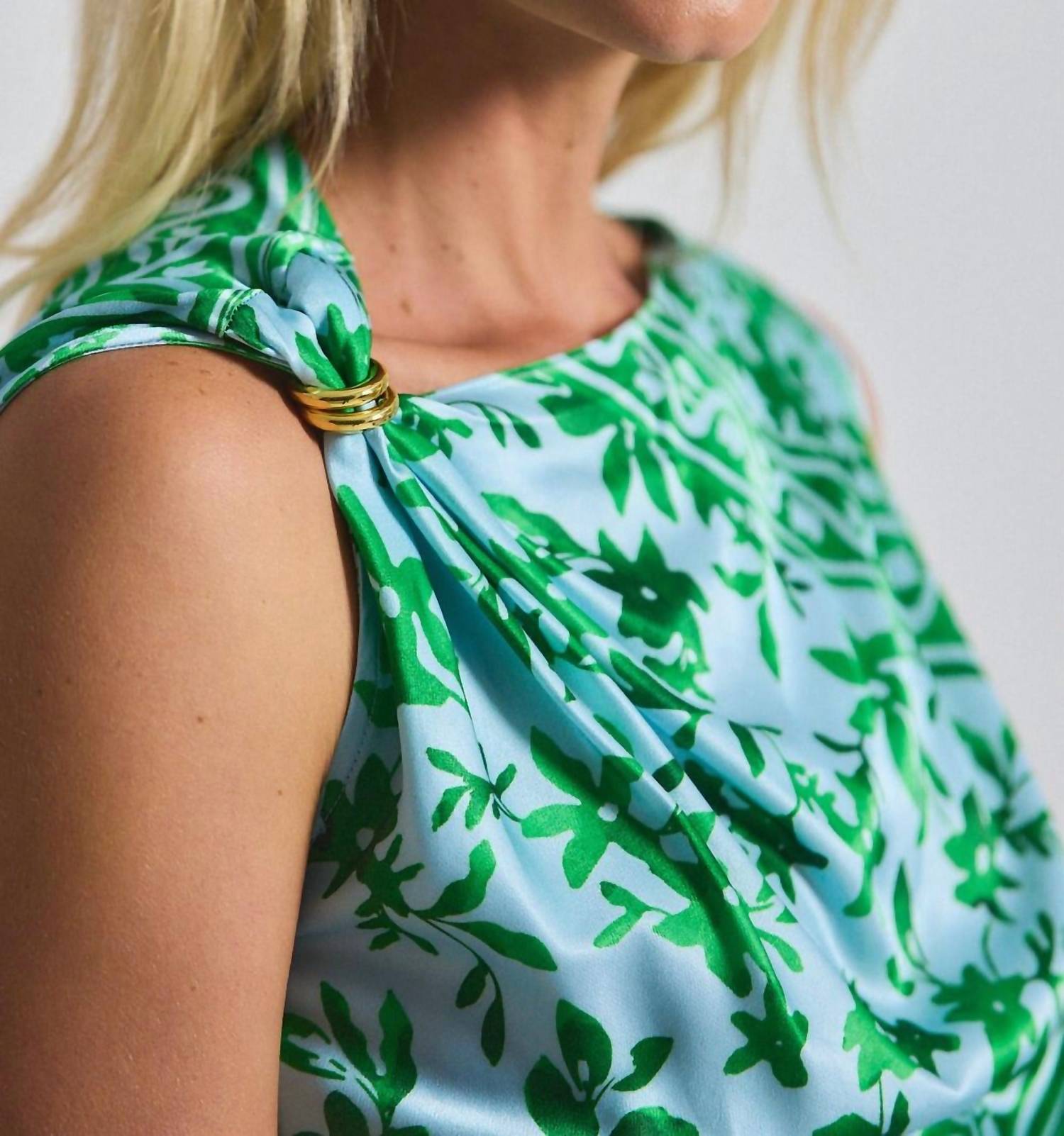 Presenting the Ariel Tile Print Asymmetrical Top by Derek Lam 10 Crosby, a sophisticated choice for any occasion. This sleeveless top in Kelly Green Multi boasts a watercolor tile print, embellished with gold rings on one shoulder to create subtle gathering. Its body-skimming design and boatneck make it perfect for pairing with high-waisted jeans or trousers. Composition: 53% Rayon, 47% Viscose. Closure: Pull on. Care: Dry clean only.