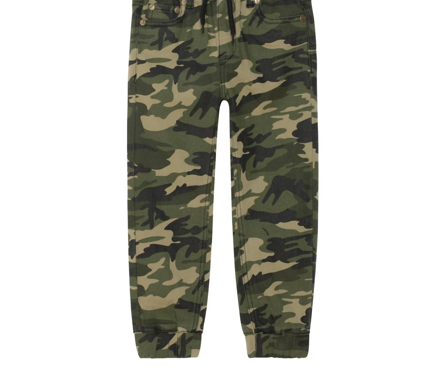 Introducing the Twill Camo Jogger Pants by Deux par Deux, perfect for boys looking to elevate their spring streetwear game. These joggers in a playful camouflage print feature an elastic banded pull-on waistband complemented by a contrasting black drawstring for easy wear. Composition: 98% Cotton, 2% Elastane, offering a comfortable midweight feel. Care: Machine wash cold, use non-chlorine bleach, tumble dry low, cool iron but do not dry clean, ensuring these pants remain a durable staple for travel or everyday adventures.