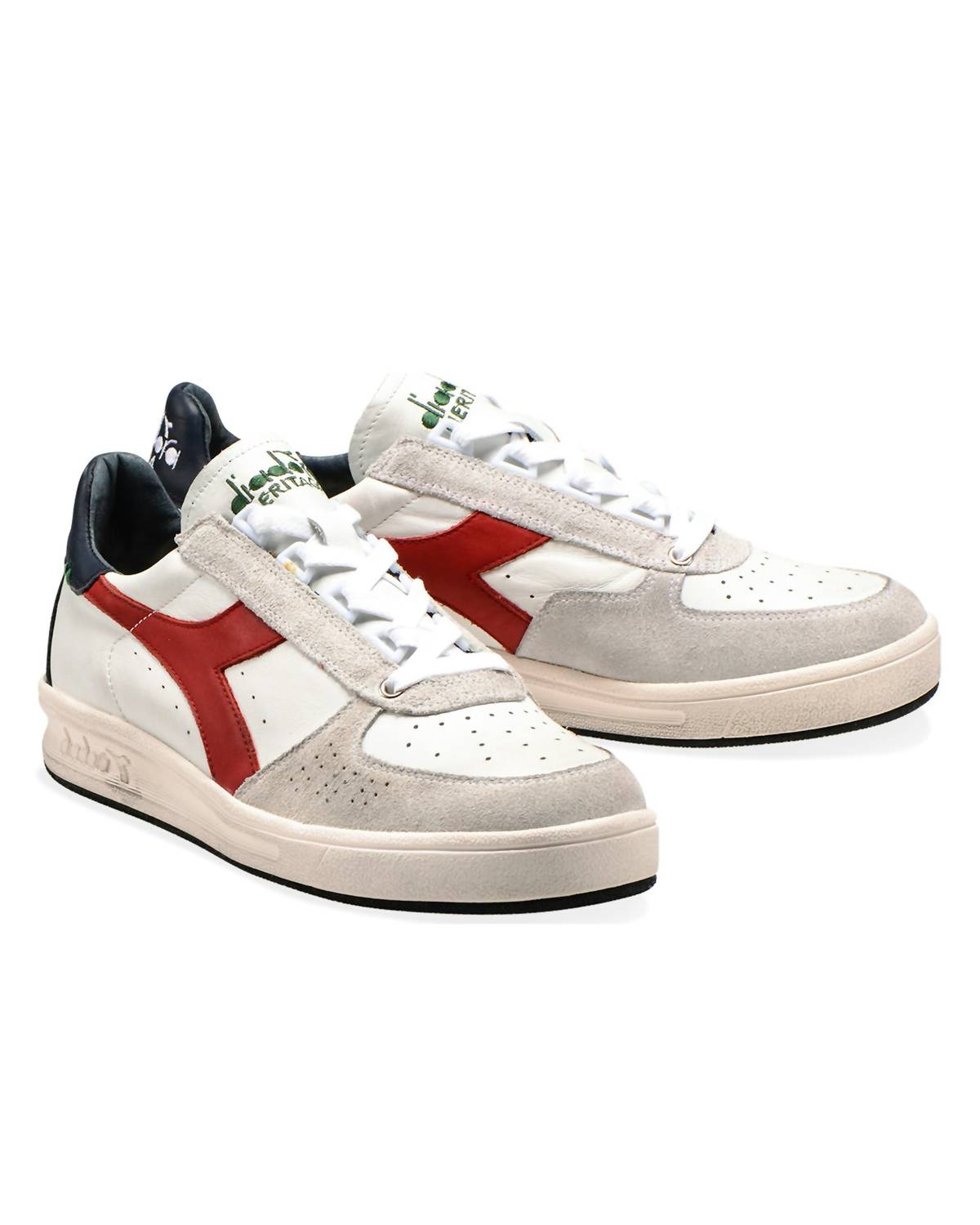 Step into style with the Men's B Elite H Leather Dirty Sneakers by Diadora, a perfect blend of Italian design and sports engineering. Crafted with premium full-grain leather, these white, Pompeiian red, and blue night sneakers feature a unique “dirty” treatment for contrast and classic tennis sidewalls. Additional details include stonewashed suede for texture, grippy rubber soles for traction, and a removable insole for all-day comfort. The embroidered Diadora logo and the year 1984 adorn the back heel, paying homage to their heritage.