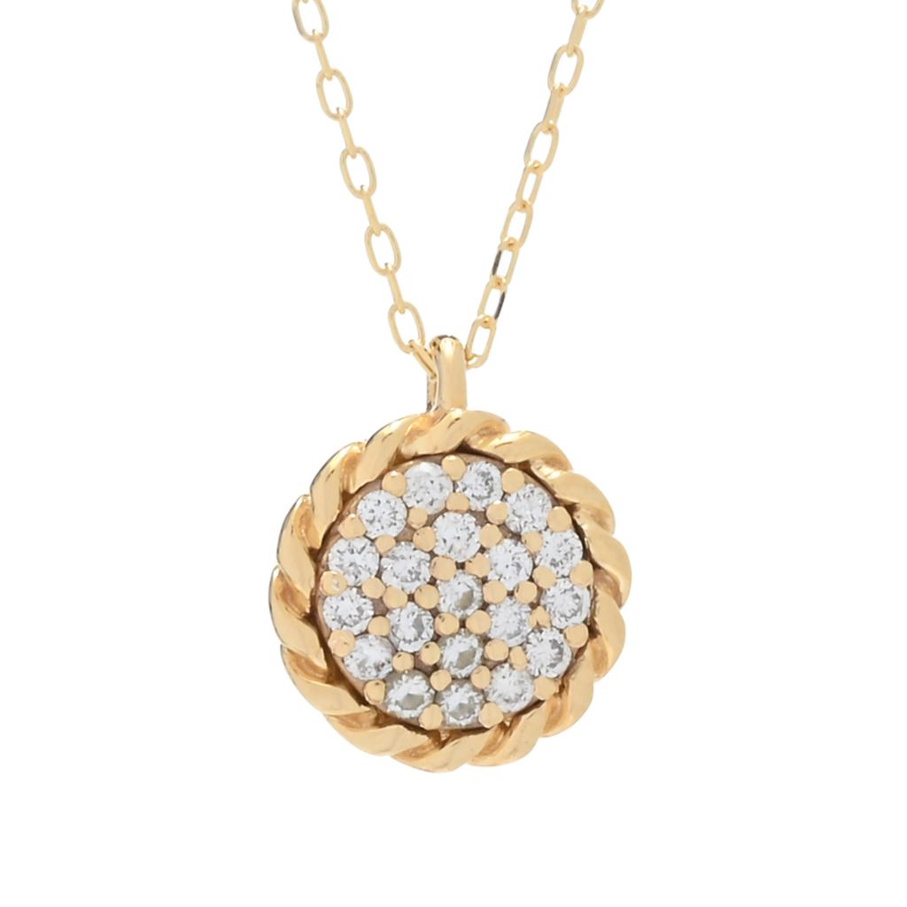 DIAMORE 14K Gold 0.16ctw Pave Diamond Rope Twist Halo Pendant w/ Chain