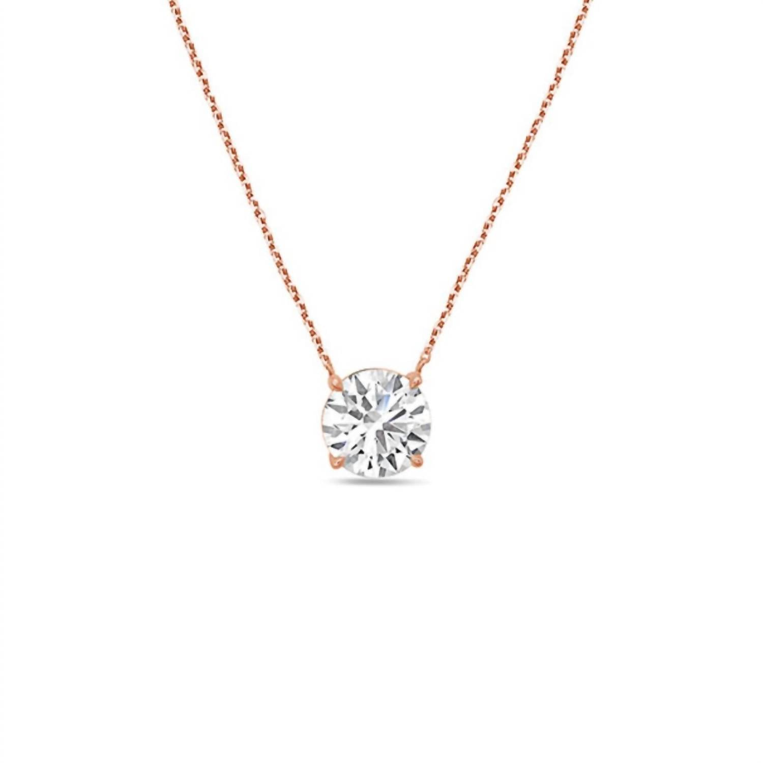 Elevate your elegance with the 1.00 Ct Lab Grown Diamond Solitaire Pendant Necklace by Diana M Jewels, expertly crafted in stunning 14k Rose Gold. The round brilliant diamond, grown in a lab, boasts a DEF color, VS clarity, and an excellent cut, secured within a classic four-prong setting. Measuring 16 inches in length, this fine necklace features a lobster clasp for secure fastening. Ideal for April birthdays, it combines luxury and sustainability in one exquisite piece.