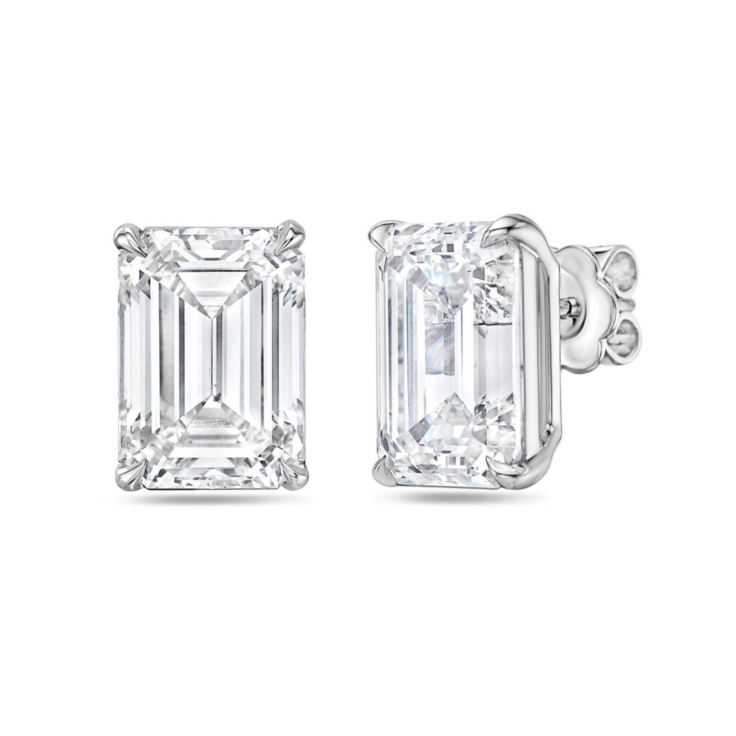 Discover the 12 Carat Lab Grown Emerald Cut Diamond Stud Earrings by Diana M Jewels, a luxurious addition to any fine jewelry collection. Crafted from 14k white gold, these earrings feature emerald-cut diamonds set in a classic four-prong setting, highlighting their DEF color and VS clarity for a stunning sparkle. Material: 14k White Gold. Stone Carat Weight: 12 carat. Stone Origin: Lab-grown. Stone Shape: Emerald. Diamond Clarity: Very Slightly Included (higher grade). These studs are a testament to elegance and sophistication.