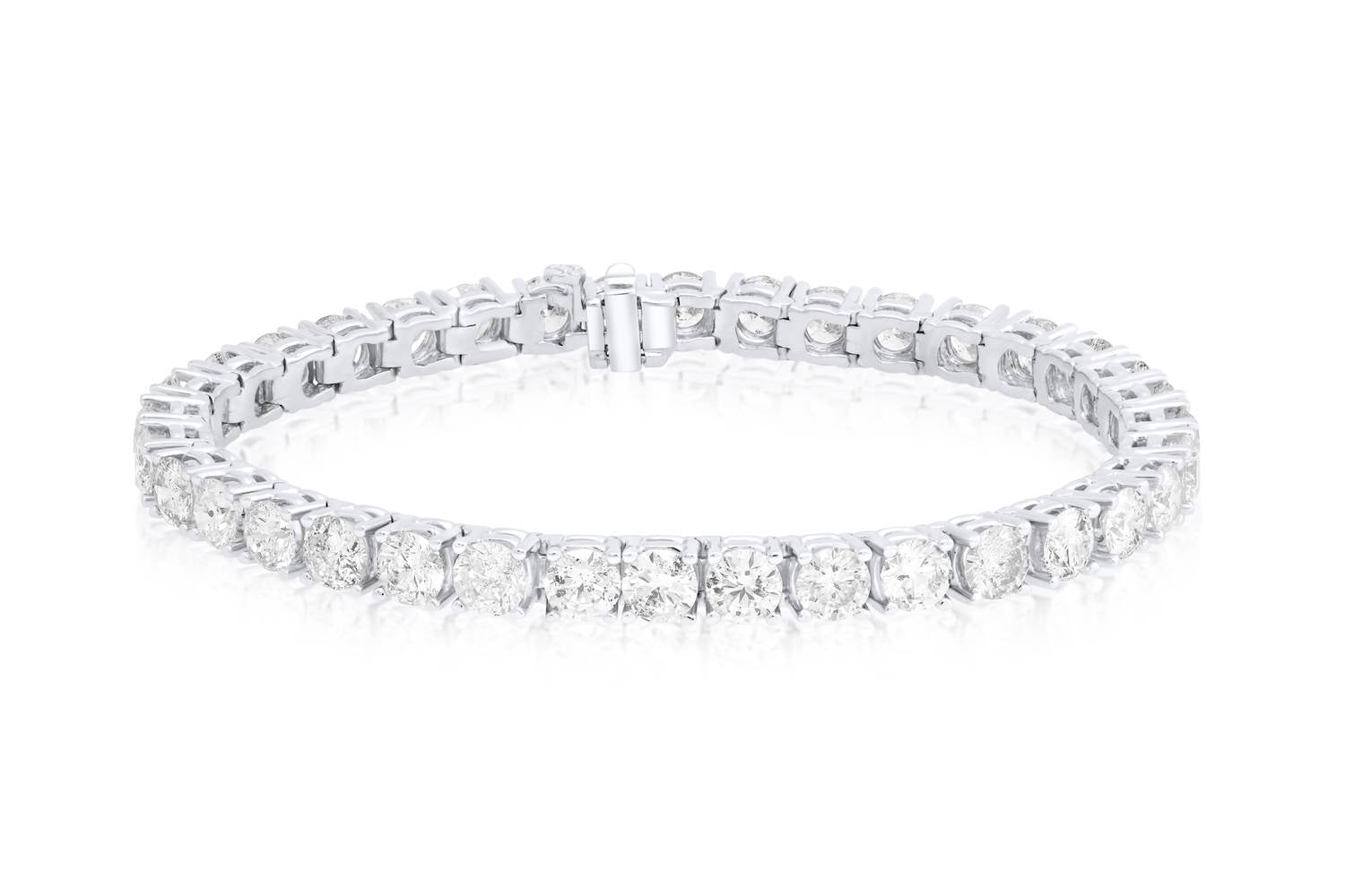 Elevate your elegance with the 8.60cts Diamond Tennis Bracelet by Diana M Jewels, crafted in shimmering 14k white gold. This exquisite bracelet features a stunning total of 8.60 carats of natural round brilliant diamonds, beautifully set in a secure 4-prong setting. It measures 7.5 inches in length and closes with a classic box clasp. A timeless piece, ideal for those fortunate enough to call diamond their April birthstone.