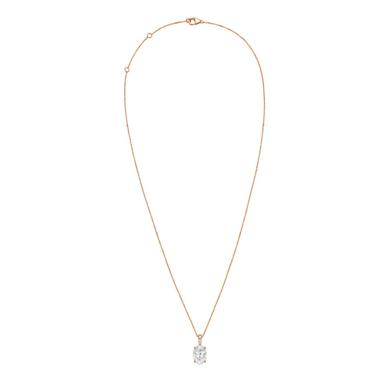 Elevate your elegance with the 14kt 2.00cts Lab Grown Diamond Solitaire Pendant Necklace by Diana M Jewels. This exquisite piece showcases a 2-carat oval diamond with VS clarity and DEF color, set in a classic four-prong setting with a diamond bail. Crafted in fine 14k rose gold, it includes a 16" chain secured with a lobster clasp. Originating from lab-grown diamonds, this stunning piece represents sustainability and luxury for those born in April.