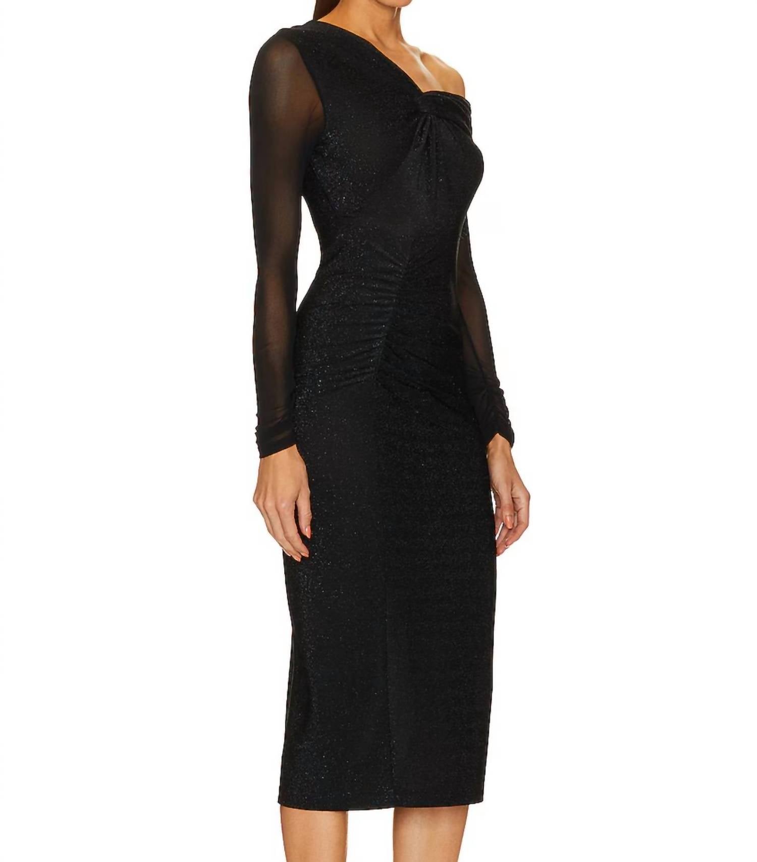 Discover the Rich Dress with Sparkle and Sheer Sleeve by Diane von Furstenberg, a sophisticated choice for evening events. This stunning black bodycon silhouette features long sheer sleeves and an off-the-shoulder neckline, perfect for making a chic statement. The solid pattern elevates its elegance, while the midi length ensures a refined look. Ideal for spring occasions, this dress is designed without pockets, prioritizing a seamless and polished finish.