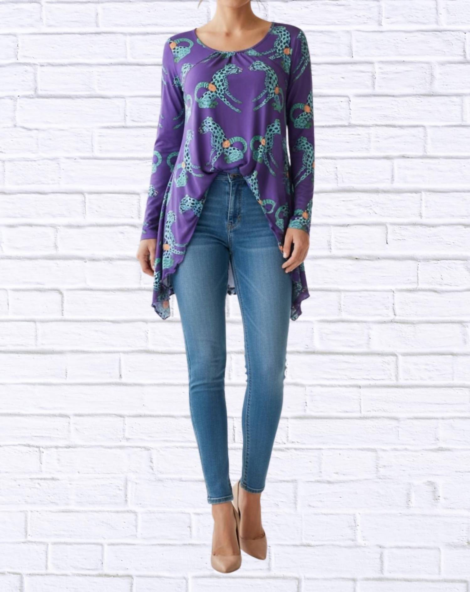 Pair this with your favorite jeans and slides for your next girls night out. Introducing the Sibella Pleated Front Long Sleeve Blouse by Diva USA, a chic addition to your fall wardrobe. Crafted from 100% knit polyester, this blouse features long sleeves and a squared V-neckline with elegantly draped pleats. Pull On. Machine wash.