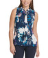 DKNY Floral Women's Tie-Neck Pleated Top Blue Size Large