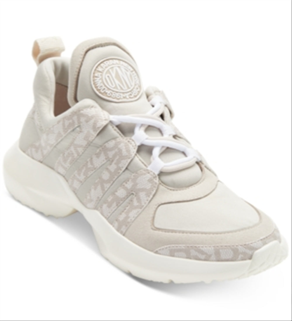 Snake-embossed metallics and crisscross ghillie laces make a fashion-forward statement with sporty athleisure style in DKNY's Lynzie sneakers.| 1 heel; 1/2 platform| Round-toe lace-up sneakers| Cushioned insole for added comfort| Leather/manmade upper; manmade lining; rubber sole| Imported