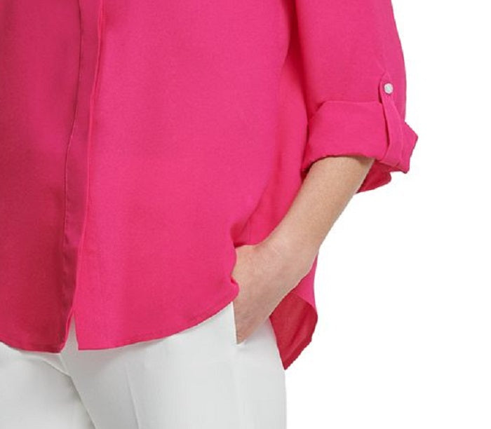 DKNY Women's Cuffed Sleeve Hidden Placket Blouse Pink Size X-Large