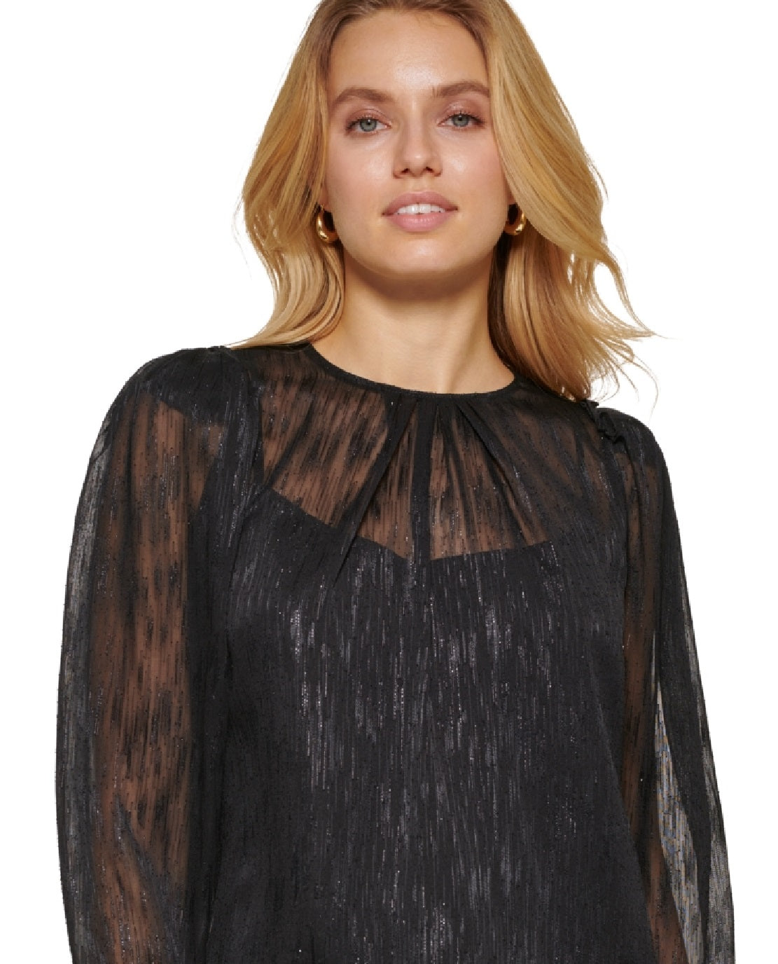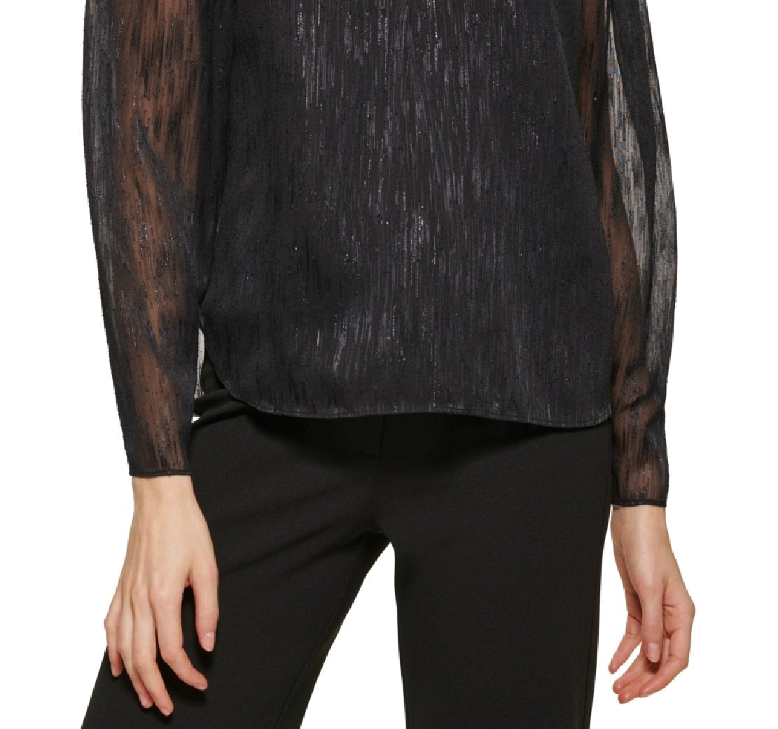 DKNY Women's Metallic Long Sleeve Blouse Black Size Medium