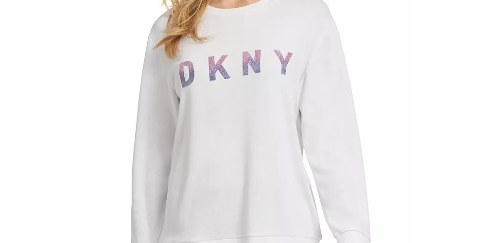 DKNY Women's Ombre Glitter Logo Sweatshirt White Size Large