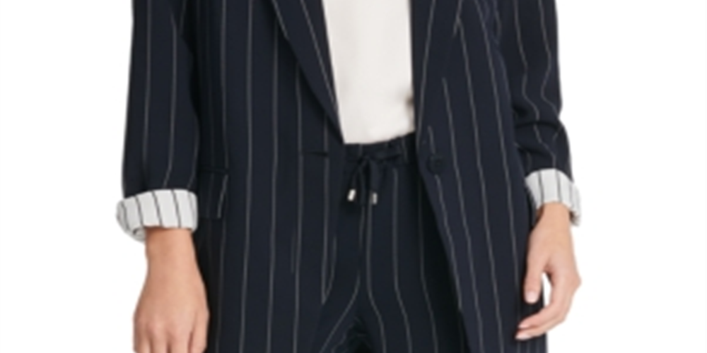 Ask a question about DKNY Women's Pinstripe Business Blazer Navy Size L