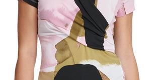 DKNY Women's Printed Surplice-Neck Top Bright Pink Size Large