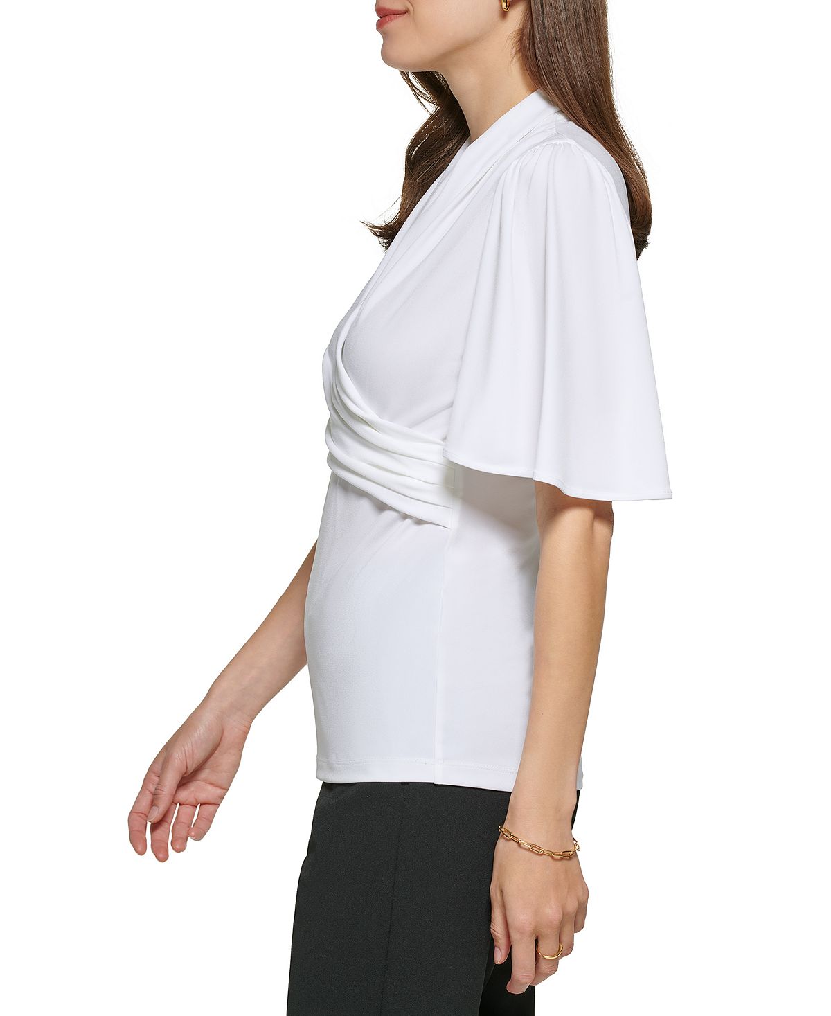 DKNY Women's Ruched Flutter Sleeve Top White Size Medium