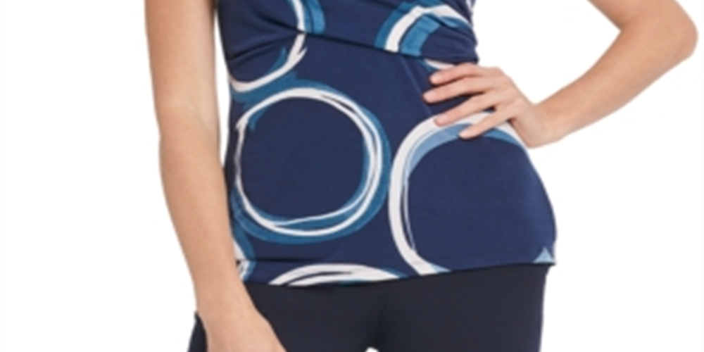 DKNY Women's Ruched Printed Short Sleeve V Neck Faux Wrap Top Blue Size XX-Large