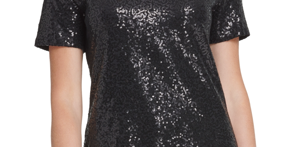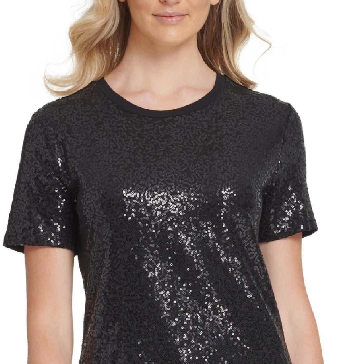 DKNY Women's Sequined Jersey T-Shirt Black Size Large