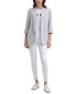 More relaxed than your average blazer| this petite jacket from DKNY has an open front and sewn roll-tab 3/4-length sleeves.| Approx. 25 long| Designed to fit and flatter 5'4 and under frame| Shawl collar; open-front styling| Shoulder pads| Welt pockets at waist