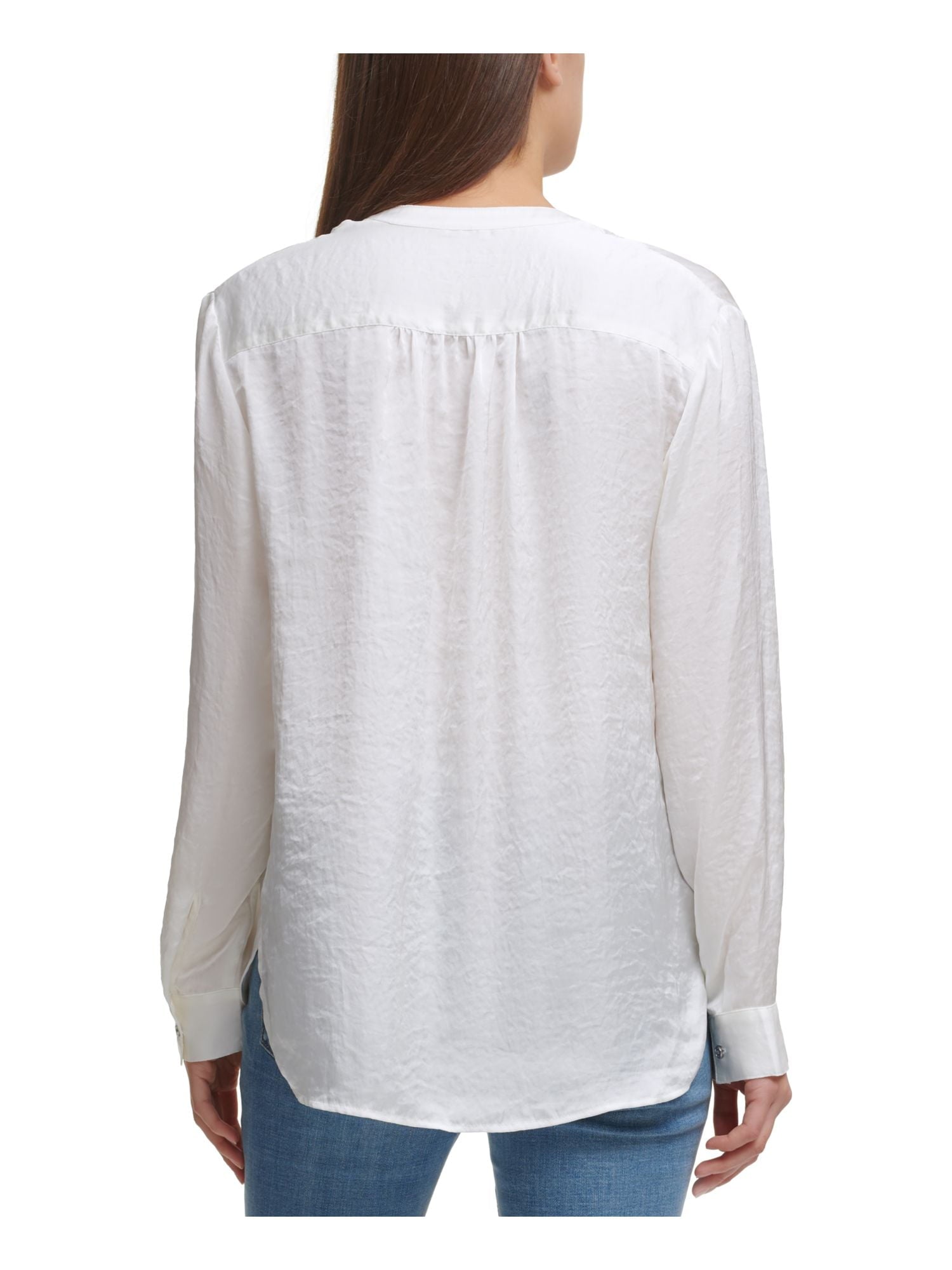DKNY Women's Sheer Pleated Blouse White Size Large