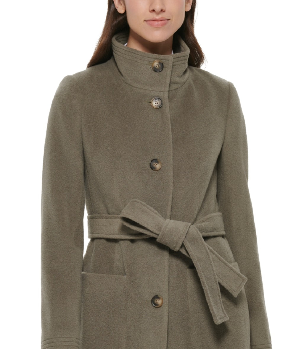 DKNY Women's Stand Collar Button Front Belted Coat Green Size Large
