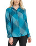 DKNY Women's Teal Pleated Printed Cuffed Sleeve Point Collar Wear to Work Button up Top Green Size M