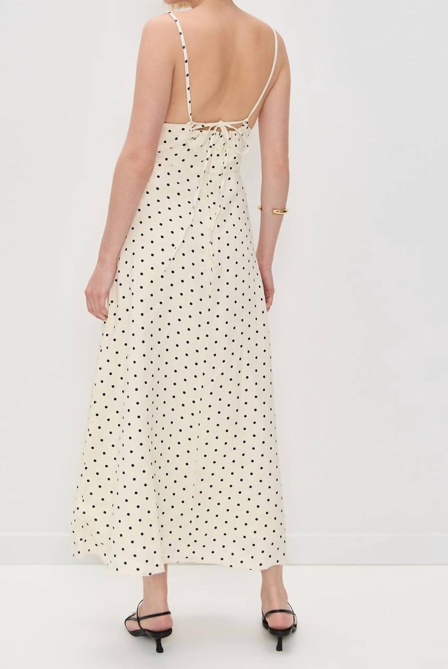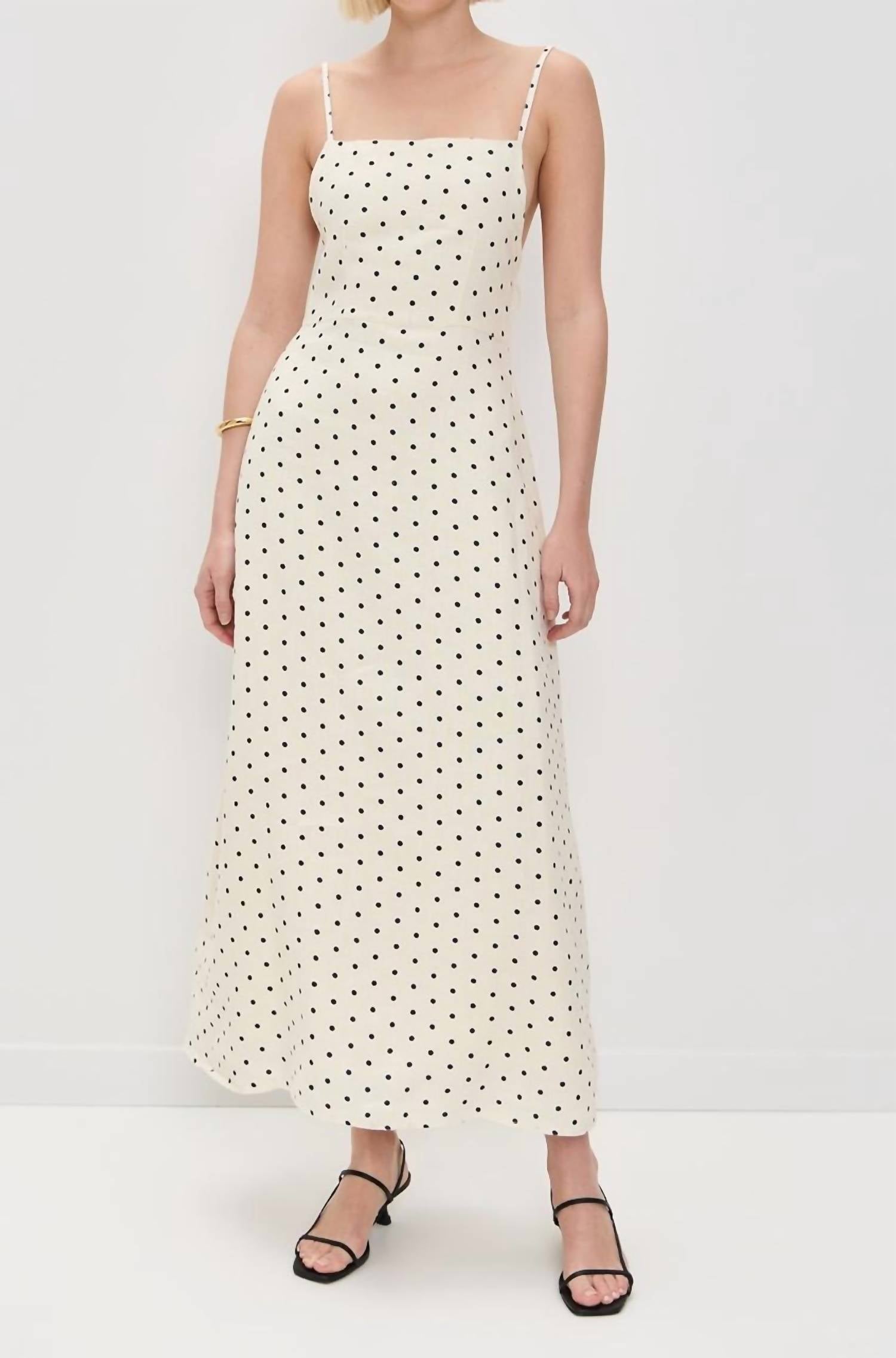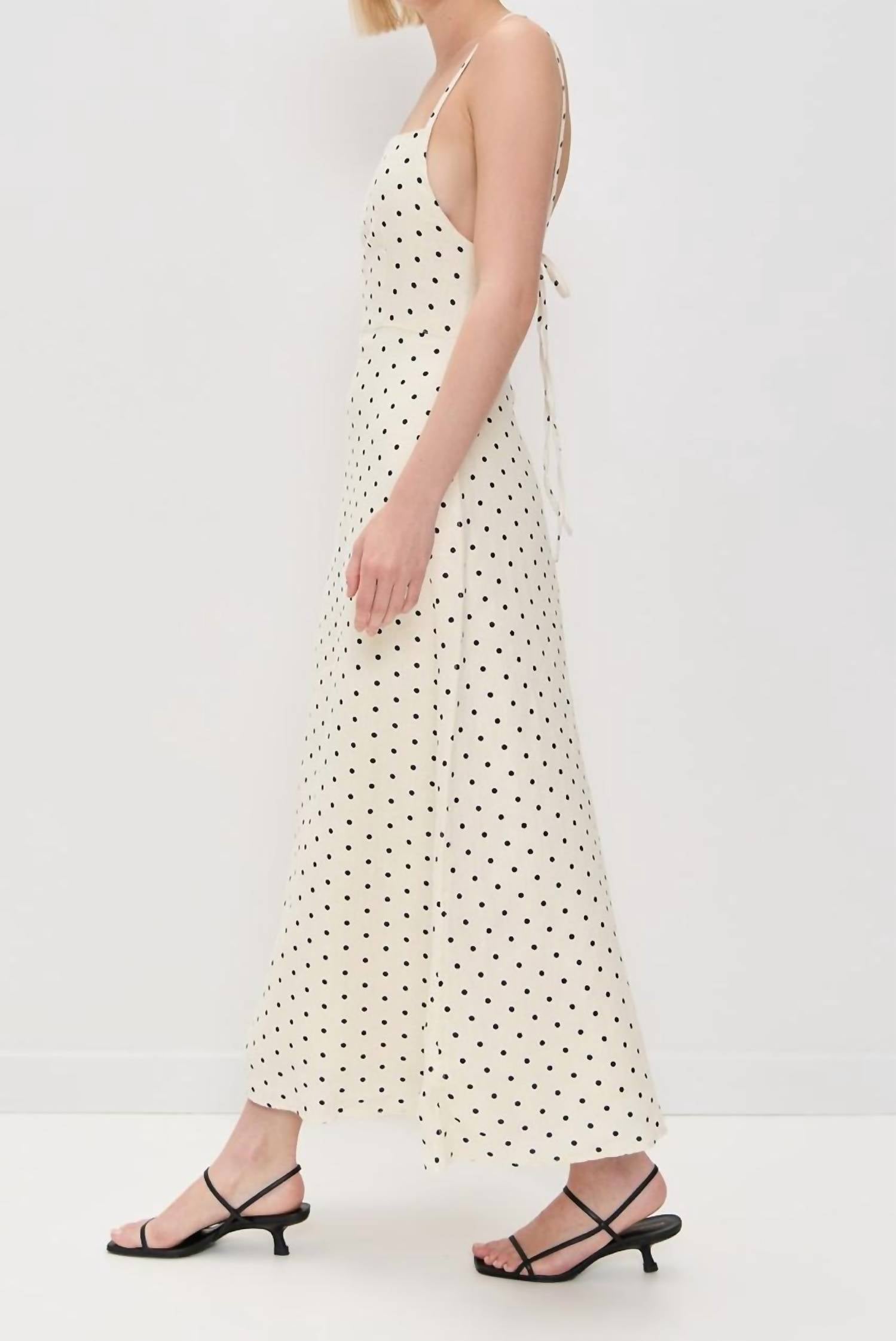 Pair with your favorite sandals for an effortlessly chic look. Introducing the Carla Linen Dress by DL1961, a quintessential piece for your summer wardrobe in an elegant polka dot pattern. This sleeveless dress features adjustable spaghetti straps and a flattering squareneck, crafted from 100% linen for a lightweight, non-stretch feel. Garment length measures 46.5 inches, with a chic apron-front midi silhouette that complements its quiet luxury vibe. Closure: Pull-on style. Originating from Pakistan, it ensures convenience with machine washability followed by line drying. Perfect for a dinner party occasion.