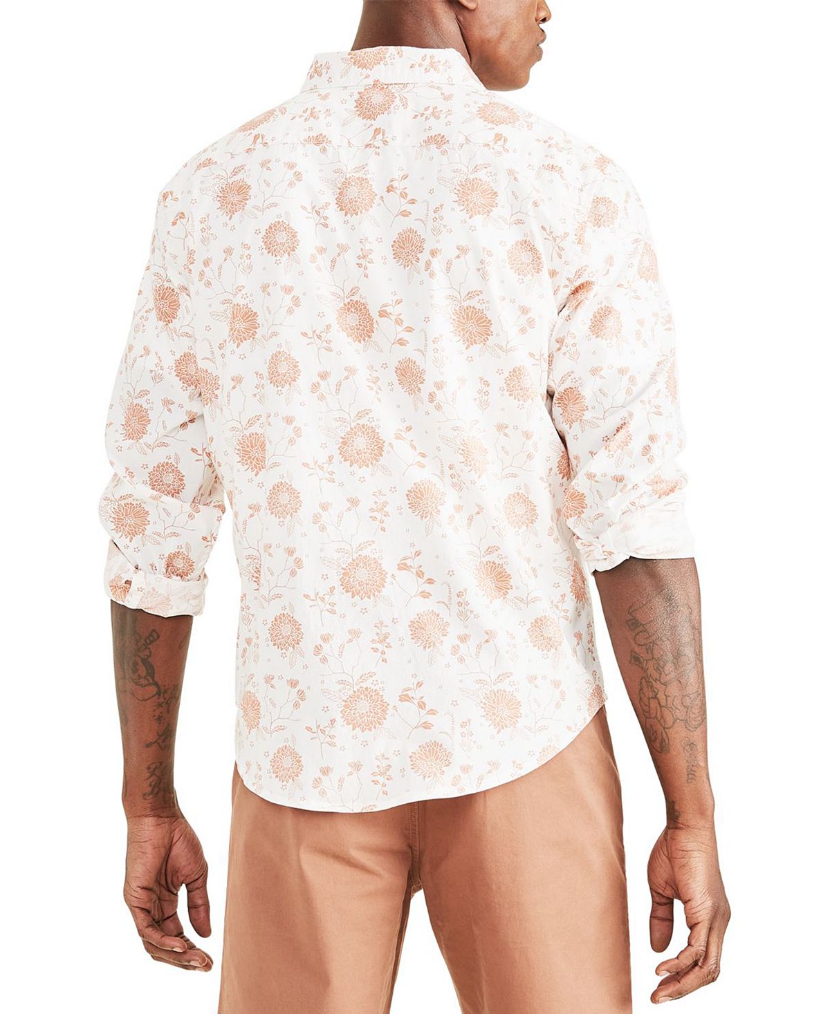 A stylish choice for any casual occasion| this shirt from Dockers features a charming floral pattern and shorter-length styling perfect for wearing untucked. | Regular fit| Point collar| Button cuffs| Floral-print pattern; patch pocket at left chest; logo label at pocket; shorter length for untucked wear| 100% cotton