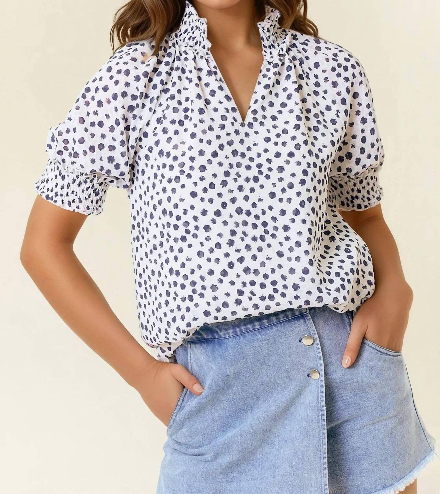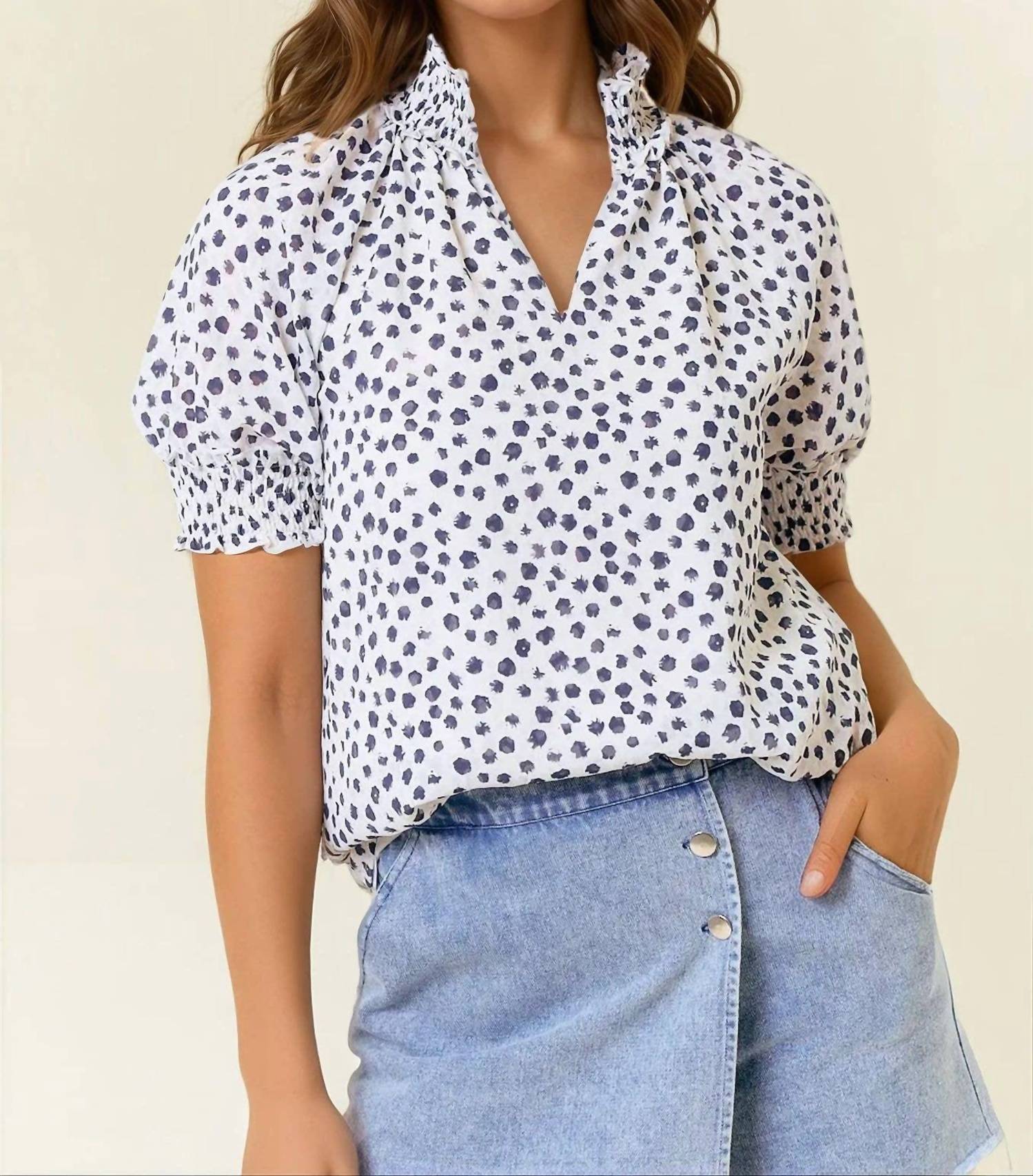 Doe And Rae - Dot Print Short Sleeve Blouse