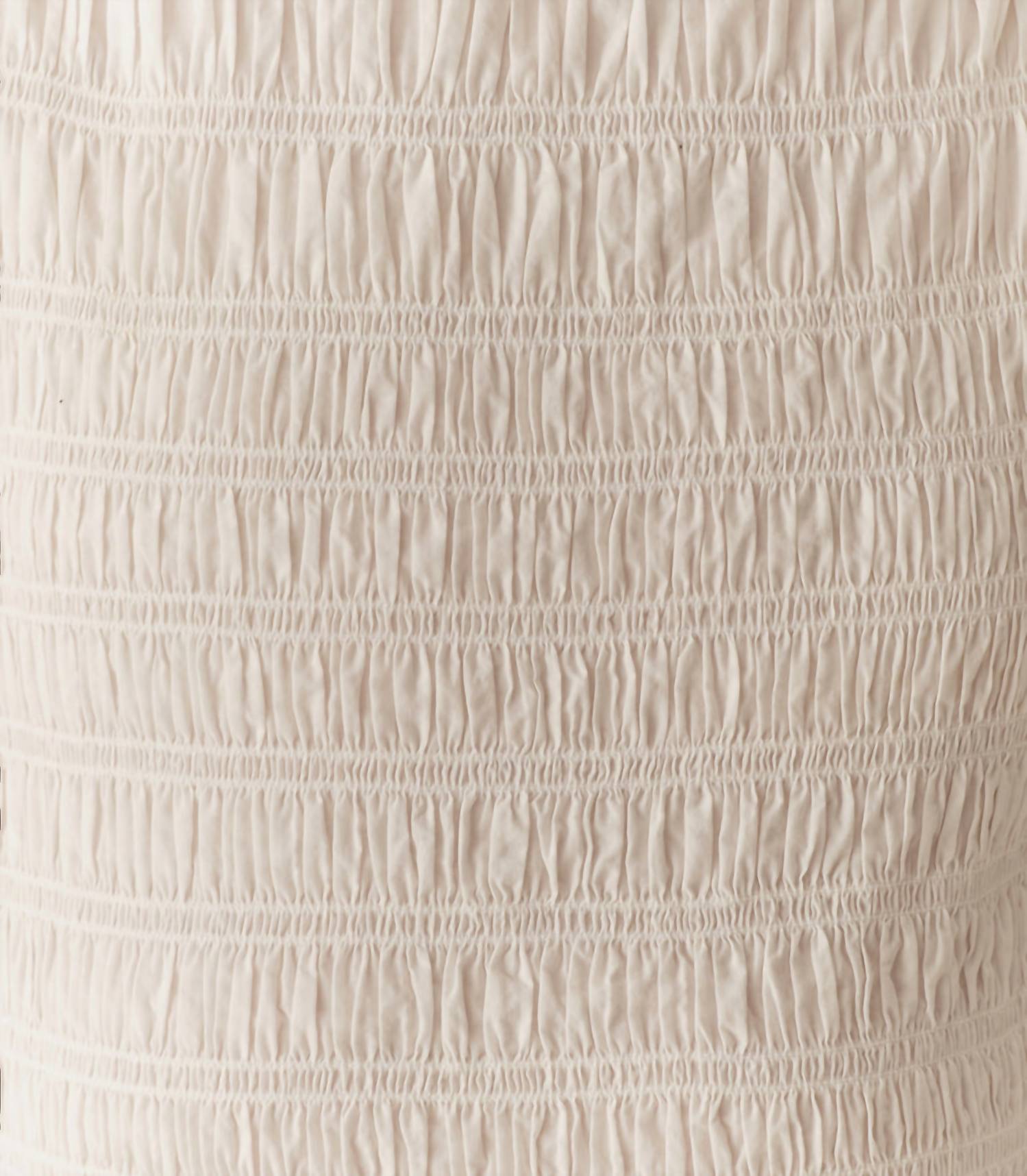 A short and breezy dress for those warmer days. Embrace elegance with the Rizzo Dress by DÔEN, rendered in crisp white organic cotton poplin. This bodycon mini dress features short puffed sleeves and a boatneck, enhanced by allover elasticized smocking and a playful ruffle at the hem. Its pull-on design is crafted in India, ensuring quality and a flattering fit for any summer holiday party. Care for this minimalist piece by machine washing cold and hanging to dry, or opt for dry cleaning for added convenience.