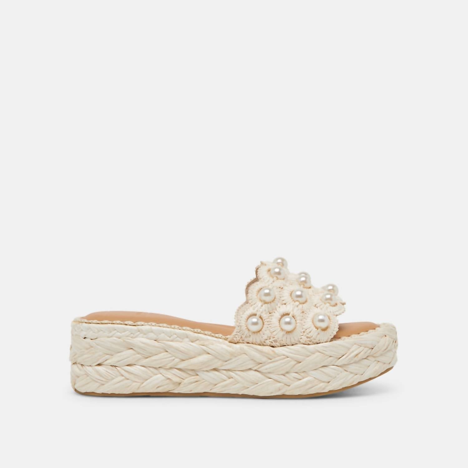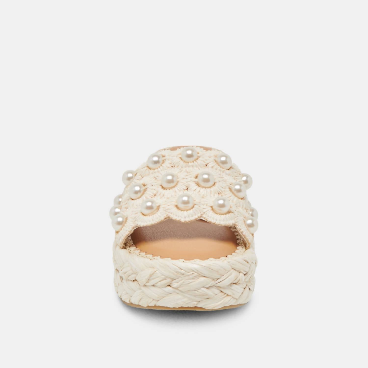 This sandal will take you from brunch to dinner and everything in between. Introducing the Dolce Vita Women's Caper Pearl Sandal in Vanilla, a must-have for your summer wardrobe. With a chic wedge heel of 1.5 inches, these sandals offer a boho-chic look perfect for vacation outings. Designed with a medium shoe width and an open toe, they guarantee both style and comfort. Step out in elegance this season with these versatile sandals.