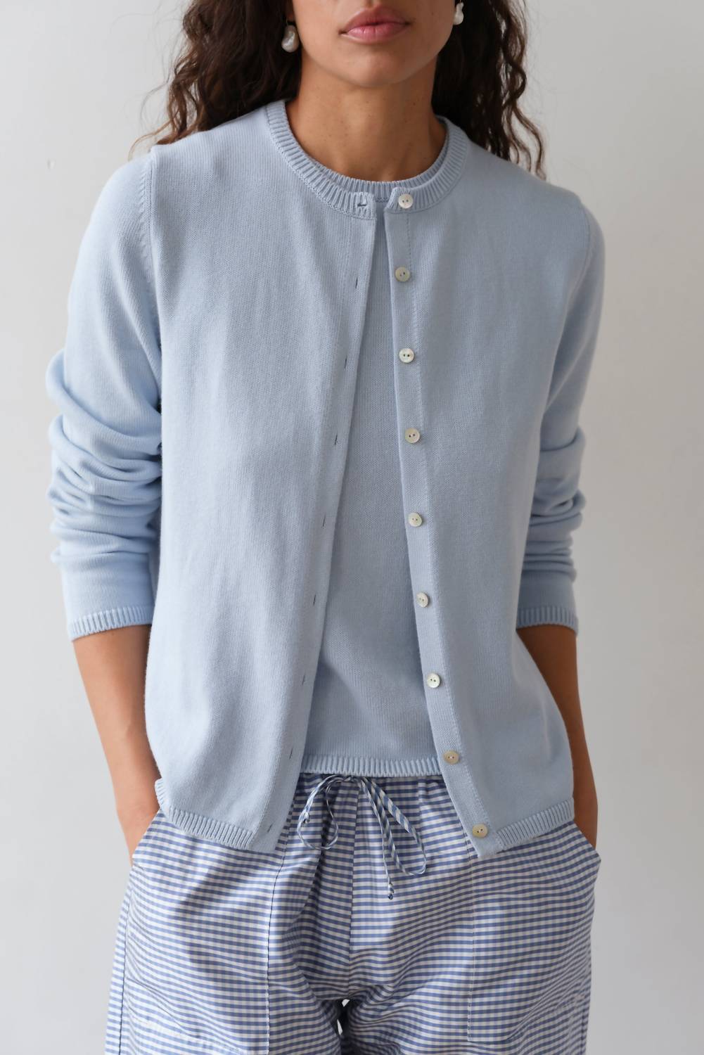 Wear this v-neck sweater with your favorite denim for the perfect fall look. Elevate your wardrobe with the creme Sweater Cardigan by DONNI., a perfect blend of style and comfort crafted from 100% organic cotton. This long sleeve cardigan features a classic crewneck and solid pattern, promising a breathable and soft feel ideal for spring travels. It includes a button closure with delicate mother-of-pearl buttons, made in Los Angeles for a true-to-size fit. Easy to maintain, simply machine wash and lay flat to dry to keep it looking its best.