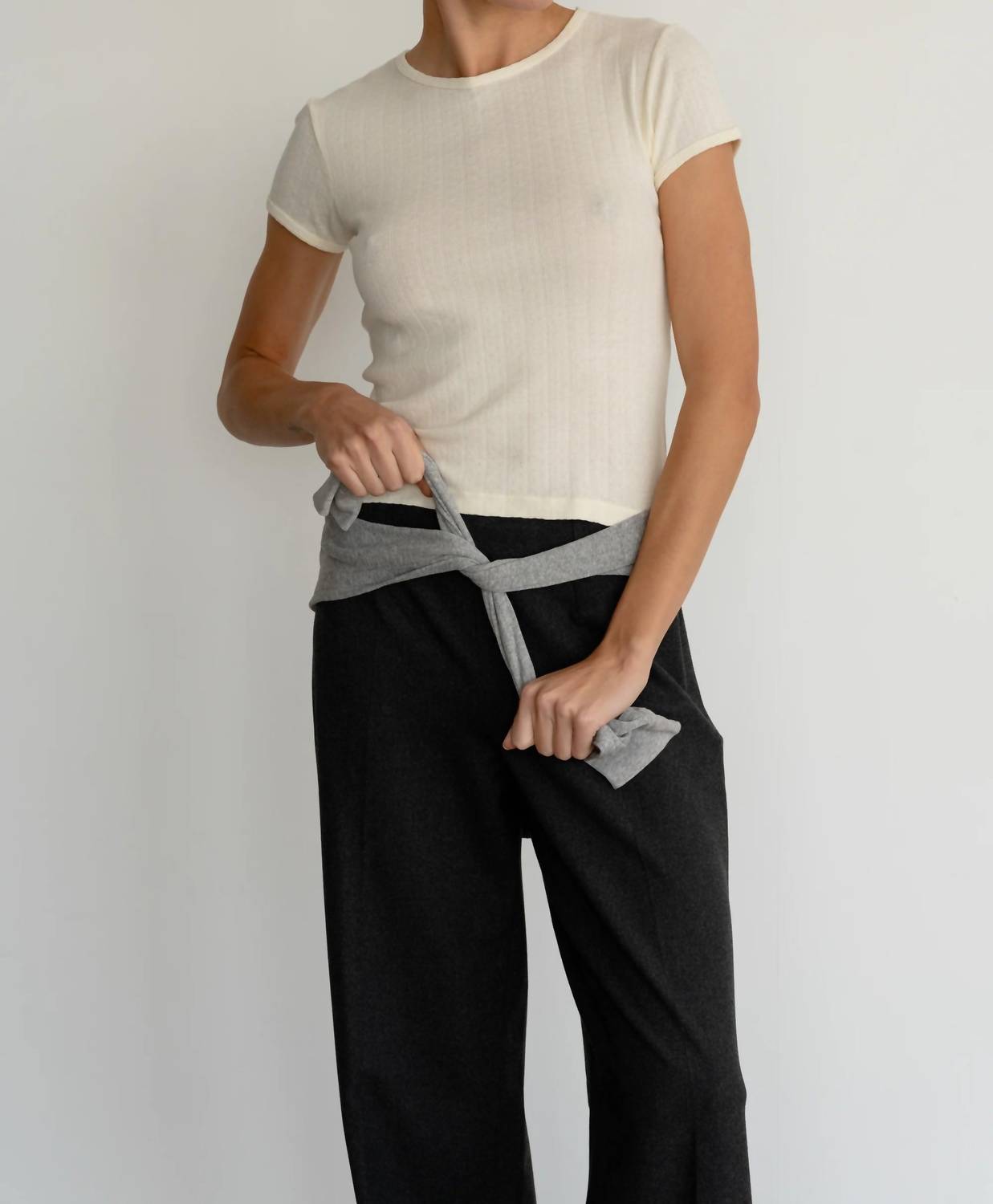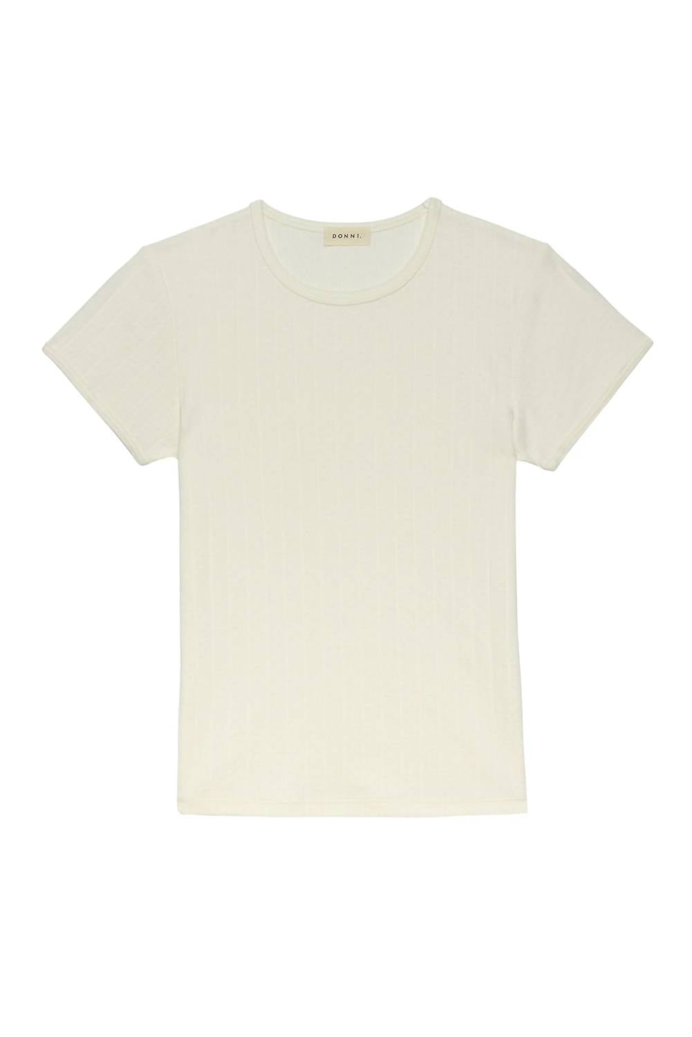 Look no further, you just found your perfect tee! Introducing the Pointelle Baby Short Sleeve Tee by DONNI., a chic minimalistic essential in a soft cream hue. This tee is made from 100% organic cotton and features a slim-fit with a crewneck and flattering cap sleeves. Made in Los Angeles, the design is finished with a convenient pull-on closure. Easy care instructions include machine washing cold on a gentle cycle and either tumble drying low or laying flat to dry.
