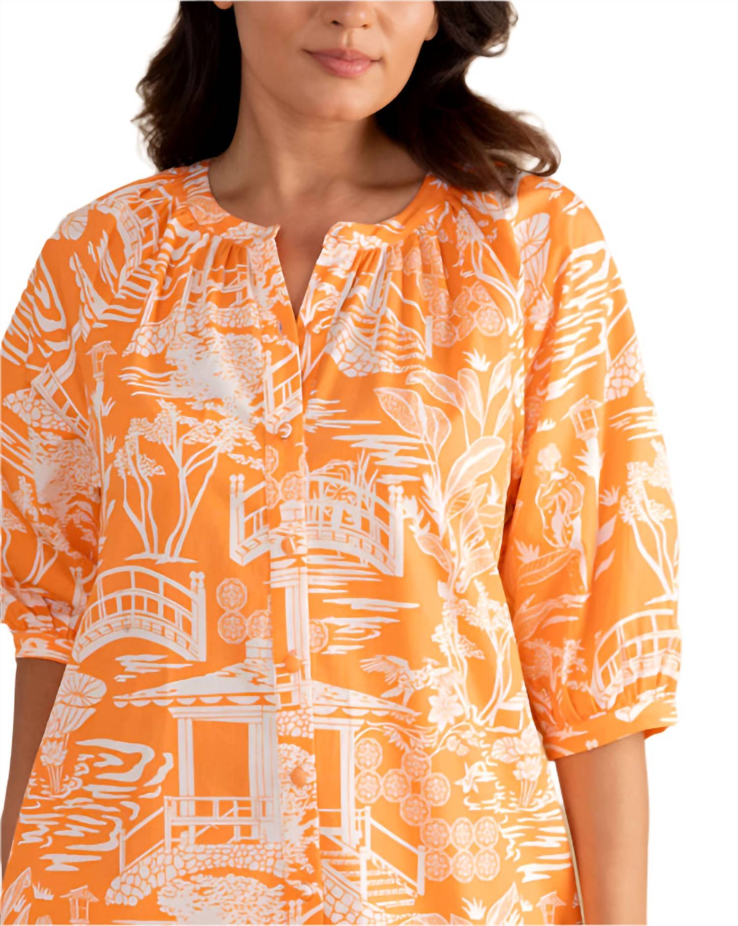 The perfect length dress does exist. Introducing the Madeleine Midi Dress by Double A, a chic and versatile piece in vibrant orange, perfect for your Summer vacation wardrobe. This shift silhouette dress features elbow-length sleeves, made from 100% Cotton Voile to ensure both comfort and elegance. It boasts a button-front closure and practical pockets, adding both style and convenience. Care instructions include machine wash cold and laying flat to dry or line dry.